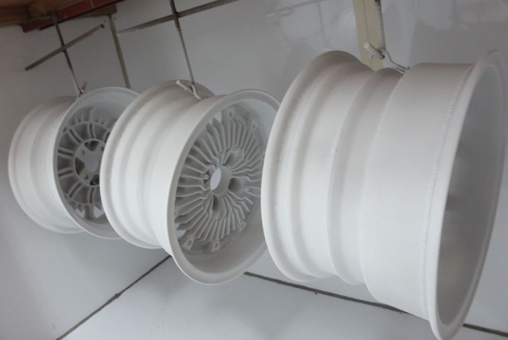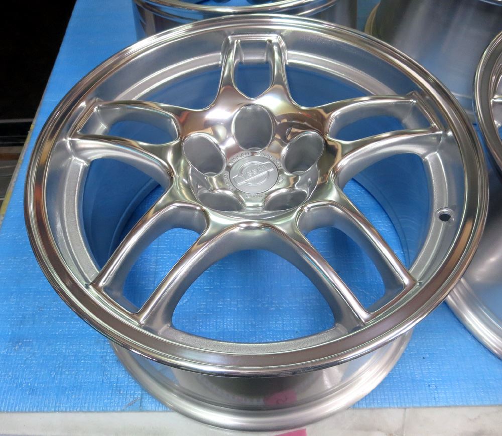 無限改造深リム15インチとR33純正17インチの2次元バレル研摩からのパウダークリアー2セットご依頼頂きましたのでまとめて紹介します。