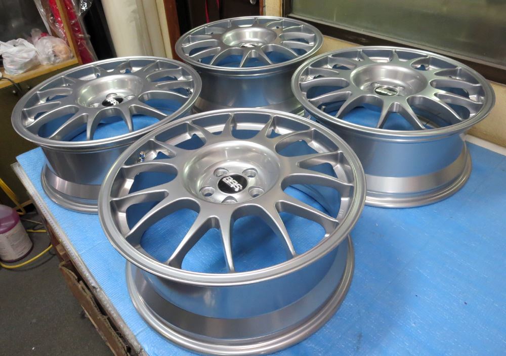 BBS-RE18インチ/ハイパーシルバー(DSK)極似の頑丈肌パウダーメタルシルバー再塗装