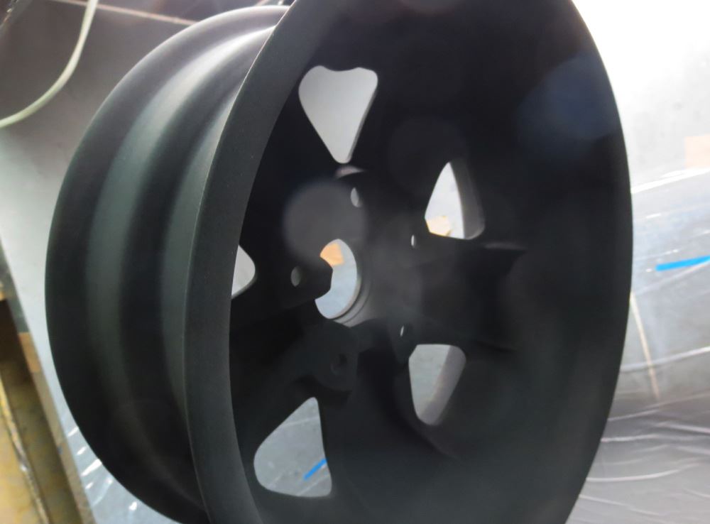 裏リムは普段汚れっぱなしでメンテ掃除が出来ませんので「頑丈肌で密着性が良く塗装が剥げにくい・熱に強いためパットカスが付きにくい・汚れ付着がしにくいため汚れ落ちが良い」などの理由で溶剤が被らない様にマスキングによる一手間掛けてインナーリムから側面リムはあえてパウダーコート肌を残します。