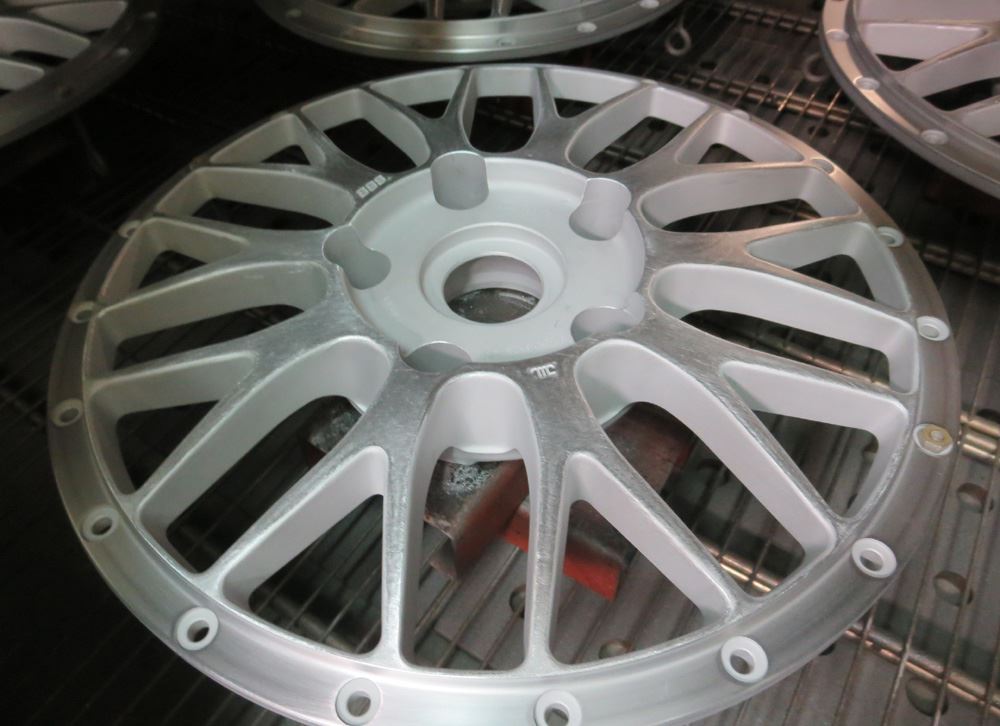 リムフランジ部からパウダー塗装残りを剥ぎながらBBFバフ研磨します。