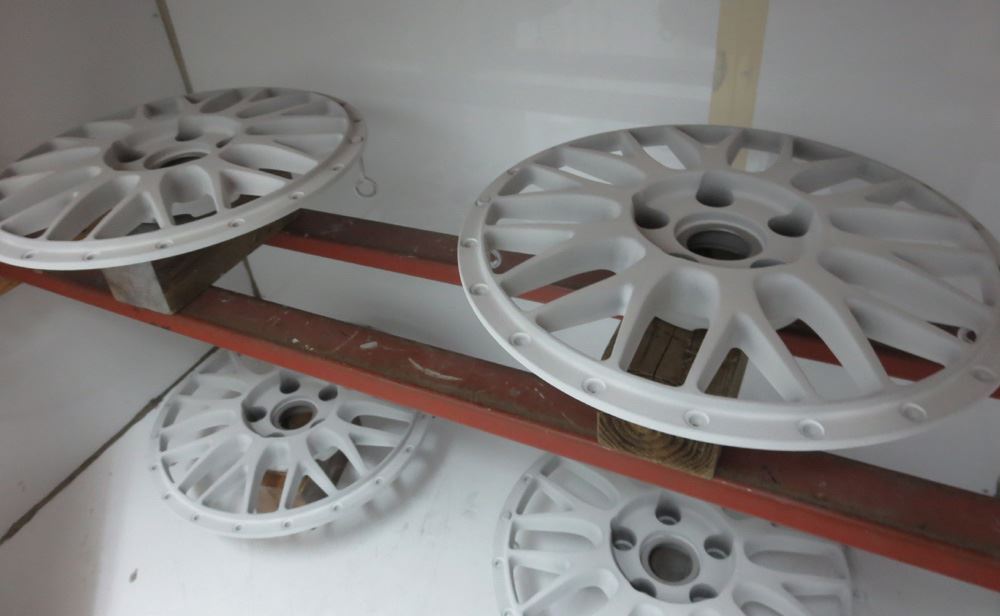 東京都のお客様・・・ディスク上塗りからリム研磨されたLM18インチです。個人タクシーのオーナーさんで仕事用のため耐久性が良くお手入れ楽なフルパウダーコートに塗り替えします。