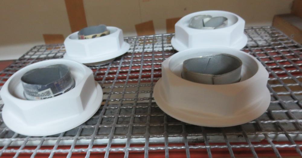 センターキャップはプラ製の台座にアルミ板を付けて有る分解出来いタイプのため溶剤での塗装になります。