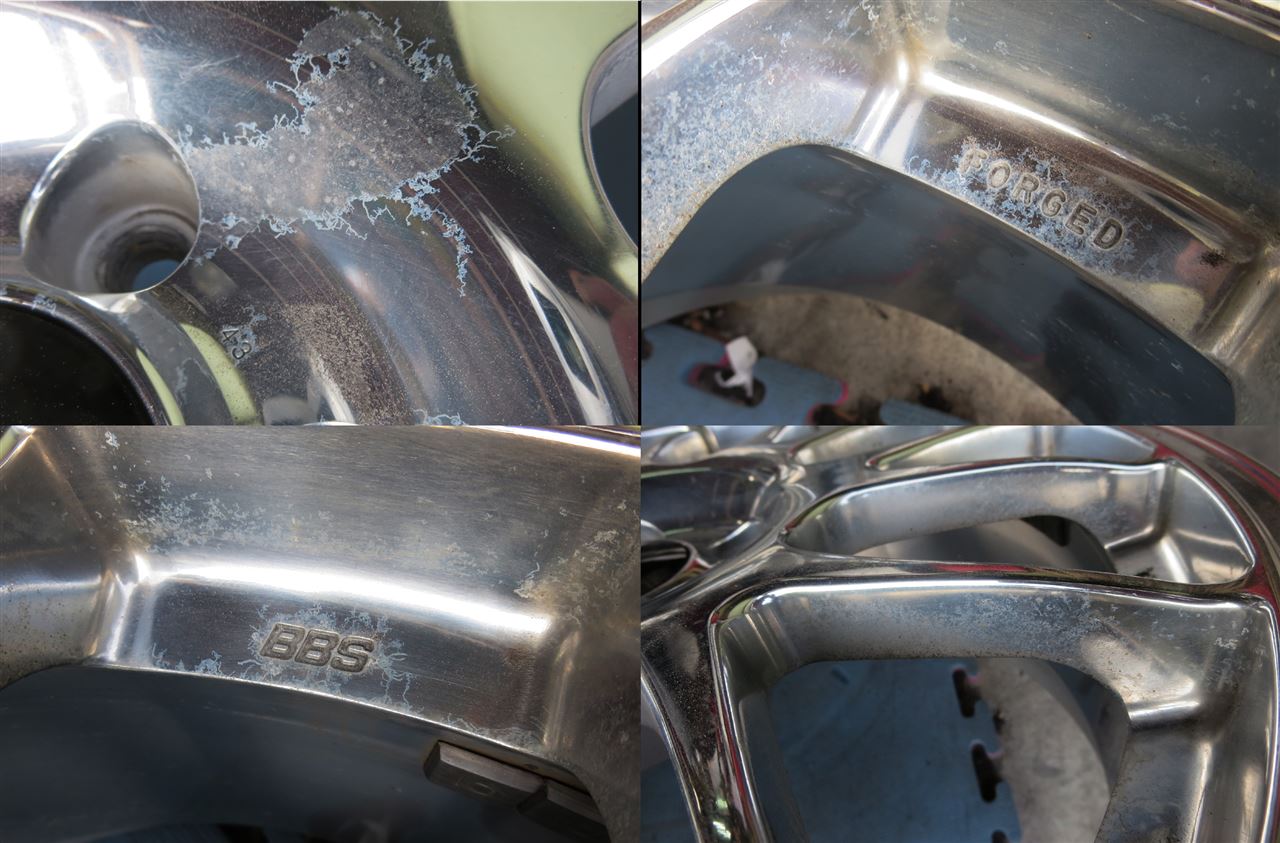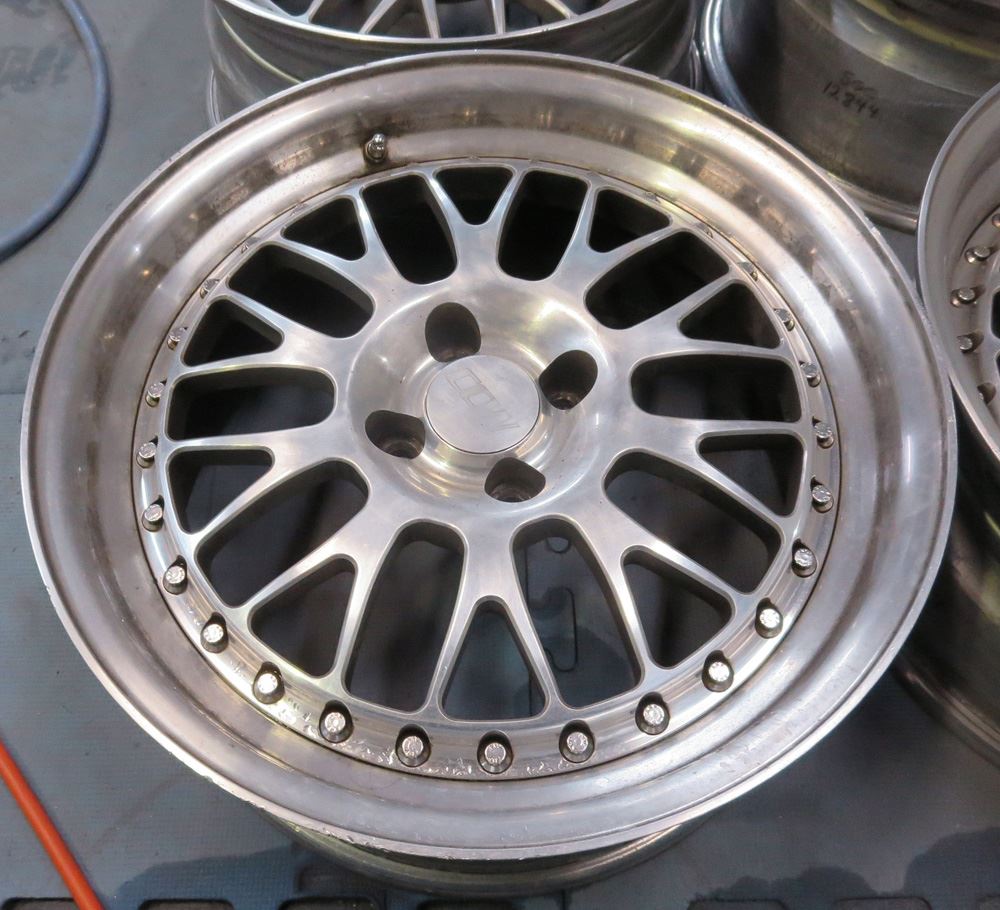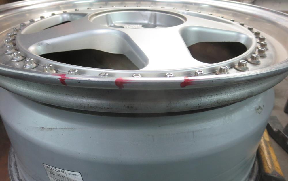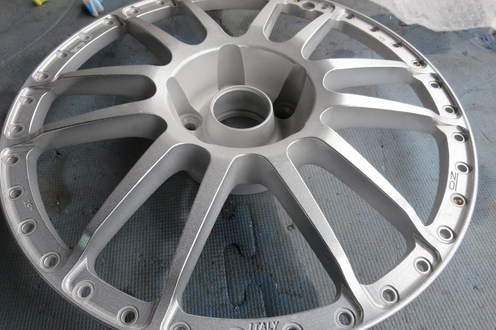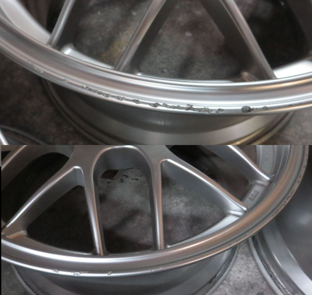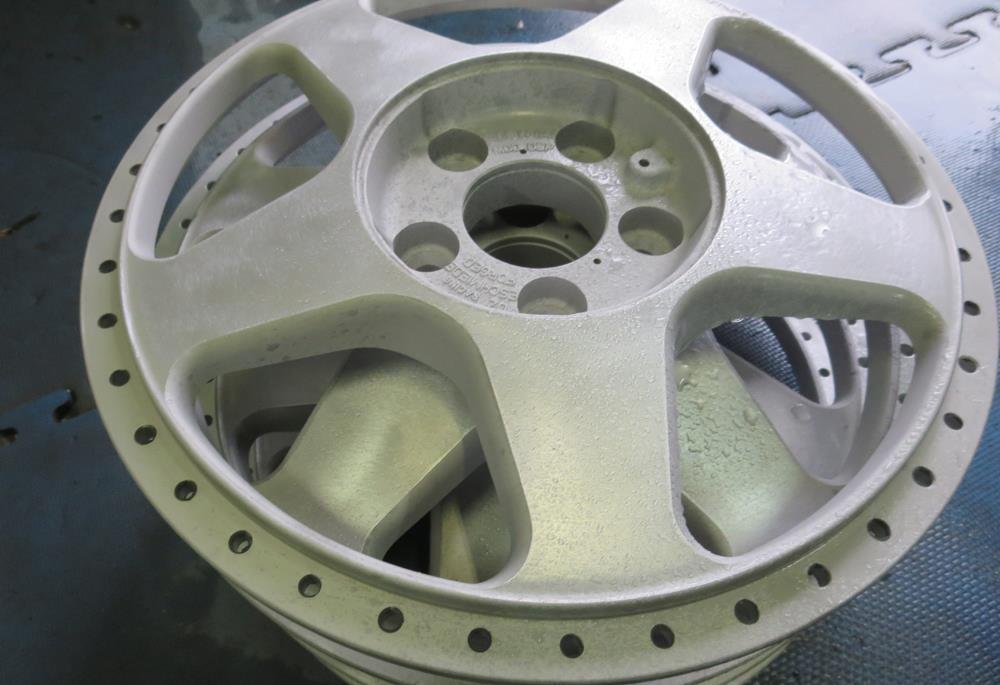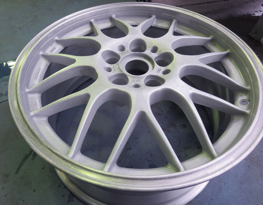 鍛造(FORGED)ホイールですのでパウダーコートにより適した素材ですがアウトリムの修復歴有りと腐食が今回の課題です。