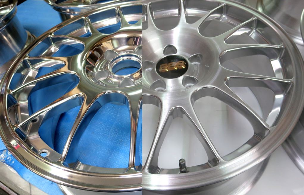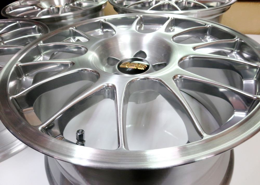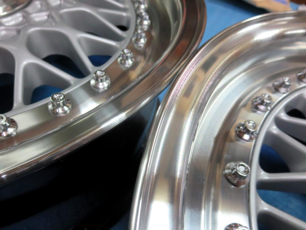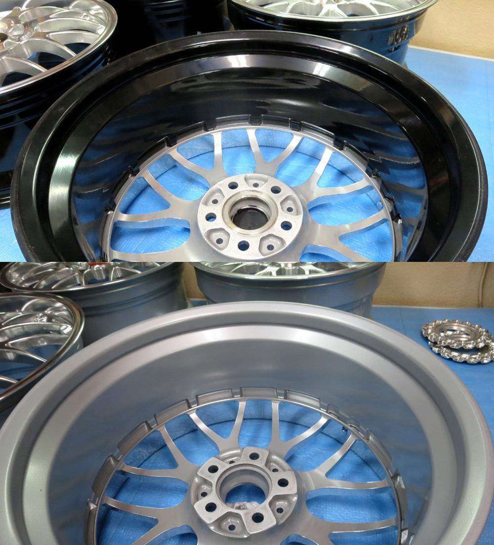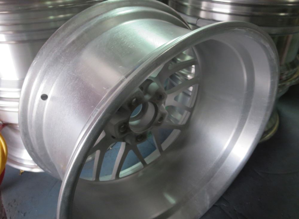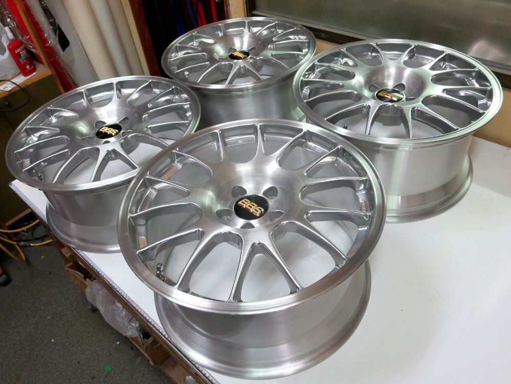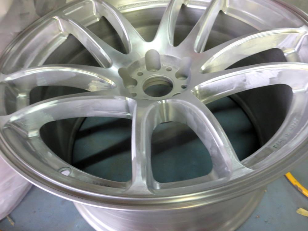 元々バレル3次研磨して有るBBS-RE18インチを再バレル3次元研磨ベースのブラッシュドから耐久性重視のパウダークリアーコーティング!
