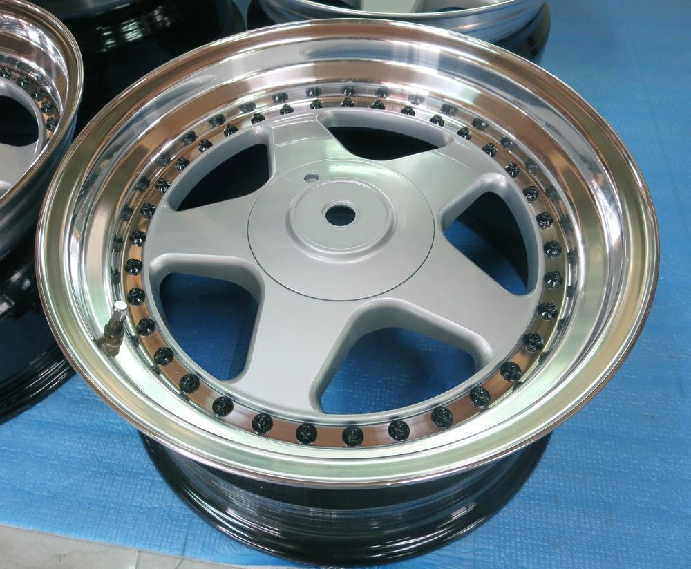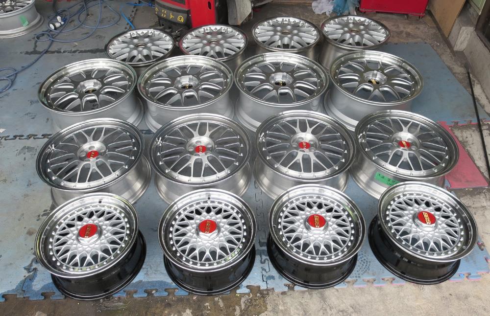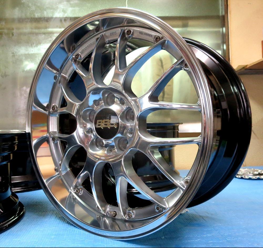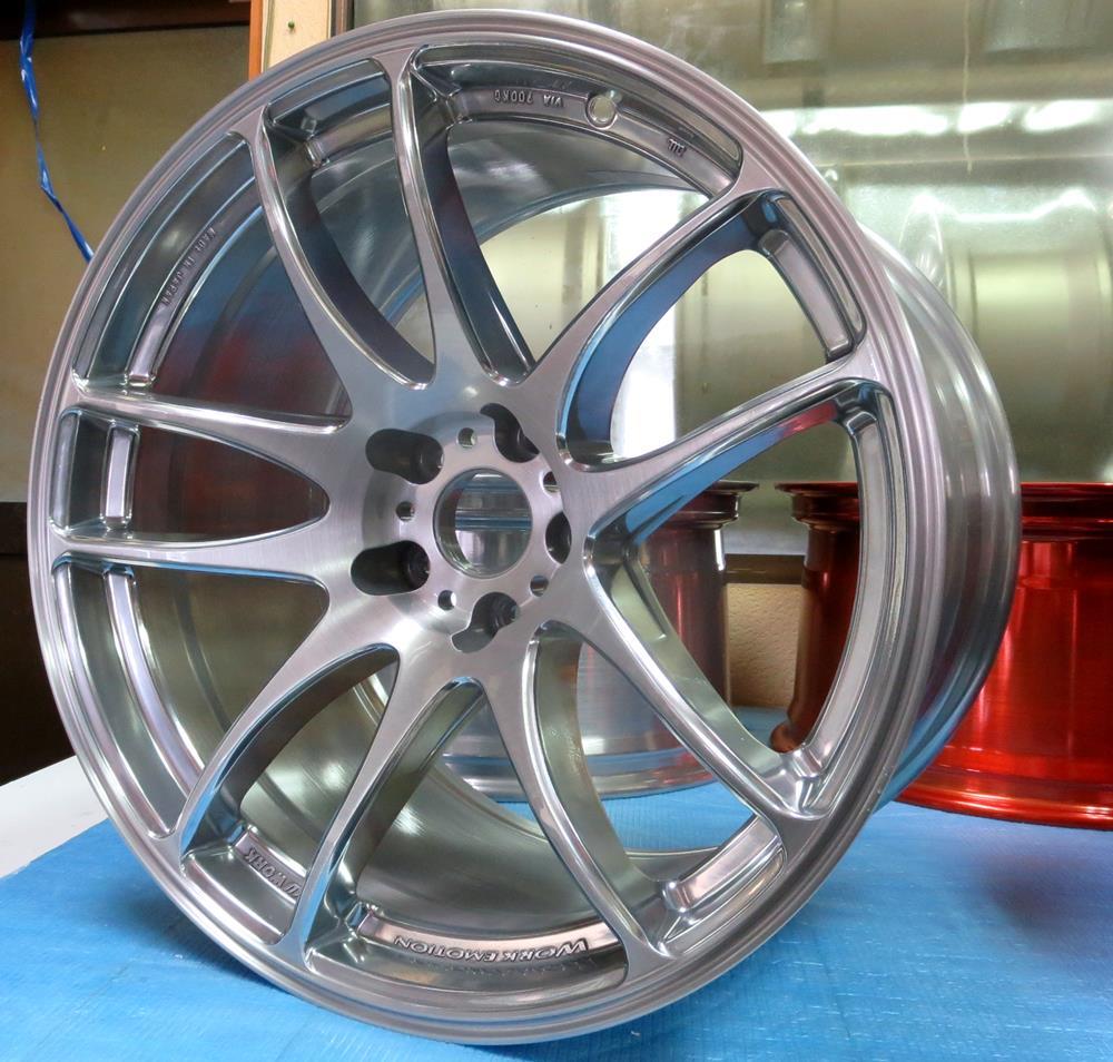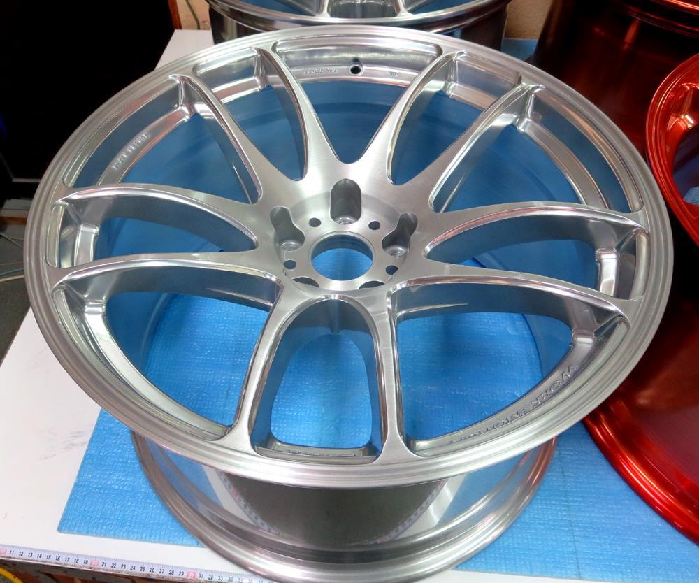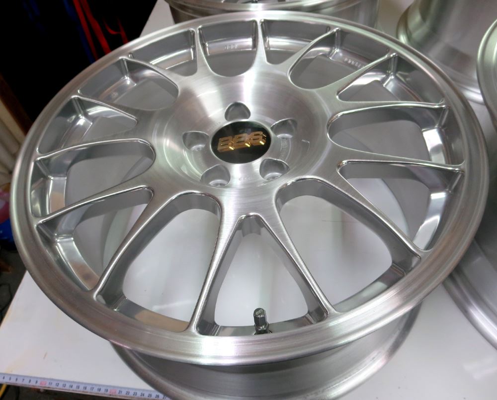 元々バレル3次研磨して有るBBS-RE18インチを再バレル3次元研磨ベースのブラッシュドから耐久性重視のパウダークリアーコーティング!