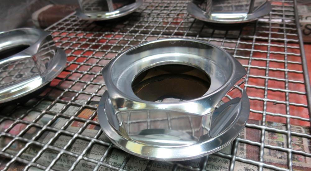 バレル研摩まですればパウダーコートの下処理としてこれ以上の無い下処理です。量産新品はここまでやりませんのでワンオフならではのひと手間掛けた拘り作業です。