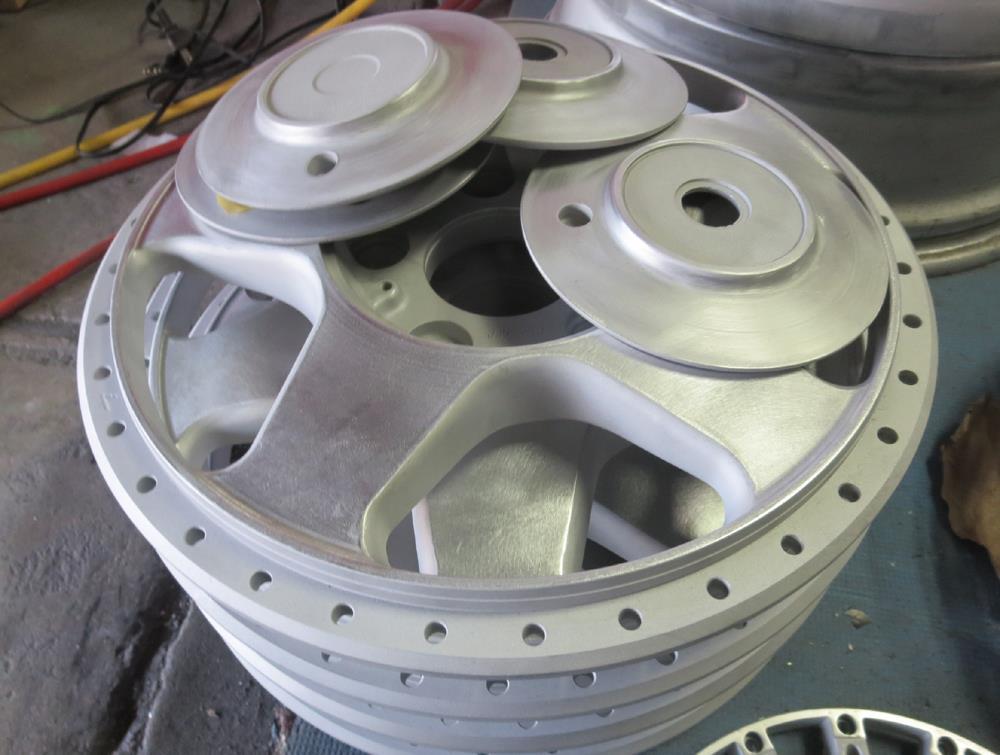 ポリッシュしたセンターキャップはパウダークリアーの静電噴射!