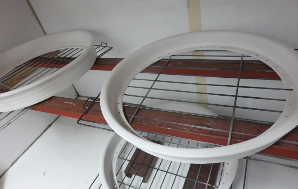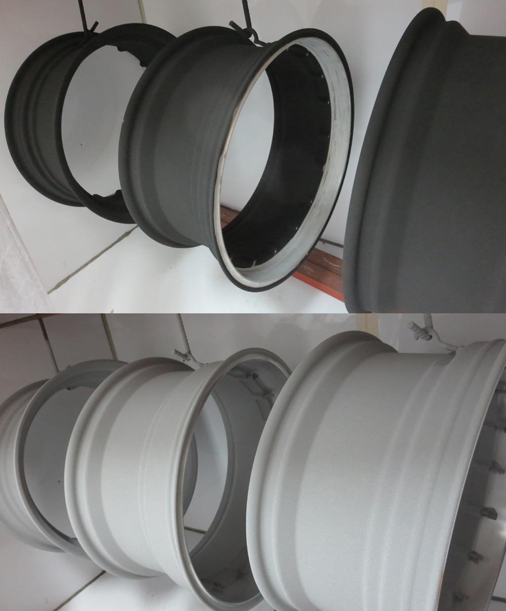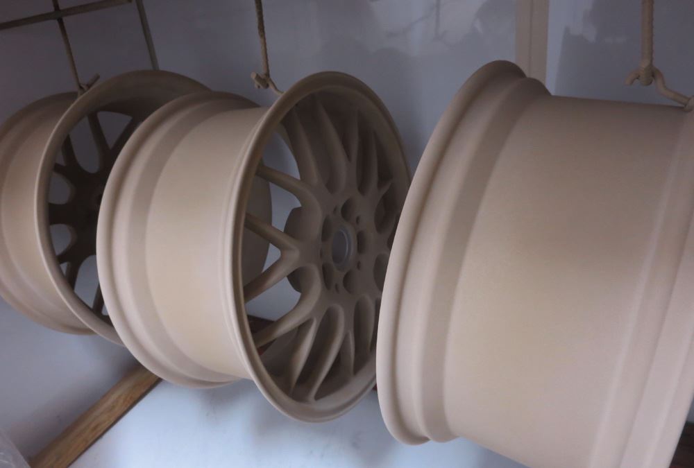 裏リムは普段汚れっぱなしでメンテ掃除が出来ませんので「頑丈肌で密着性が良く塗装が剥げにくい・熱に強いためパットカスが付きにくい・汚れ付着がしにくいため汚れ落ちが良い・」などの利点からインリムへのパウダーワンコートフィニッシュが理想的です。