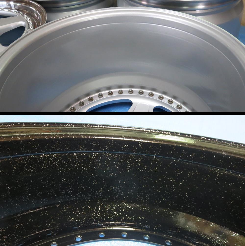 高級鍛造(FORGED)ホイールほど良い結果が出ますが一部の海外製の鋳造(CAST)ホイールなど余計に手間掛けた割にはここまでならないモノも有ります。