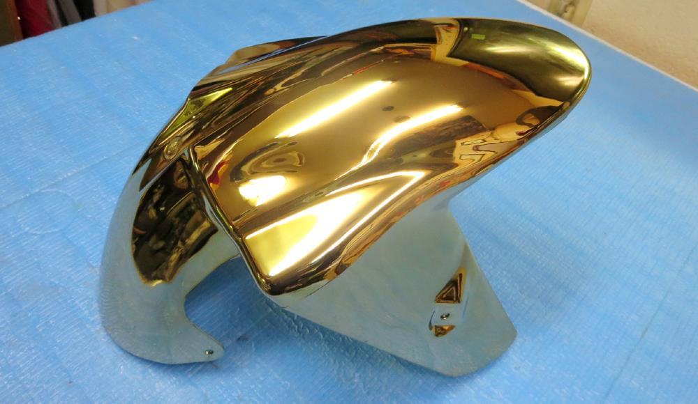 先塗りのパウダーゴールドにはパウダークリアーにより2コート目となり後加工のBBFバフポリッシュへのパウダークリアーは1コートになります。