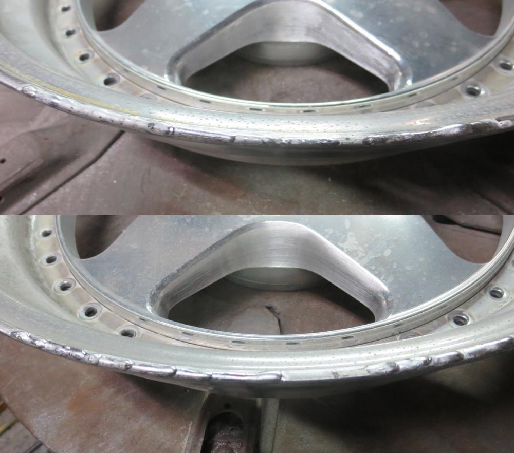 人気モデルの反面、様々なオーナーを渡り歩いている途中で削り込み修理や溶接団子残しなど変な修復歴の多いホイールでも有ります。