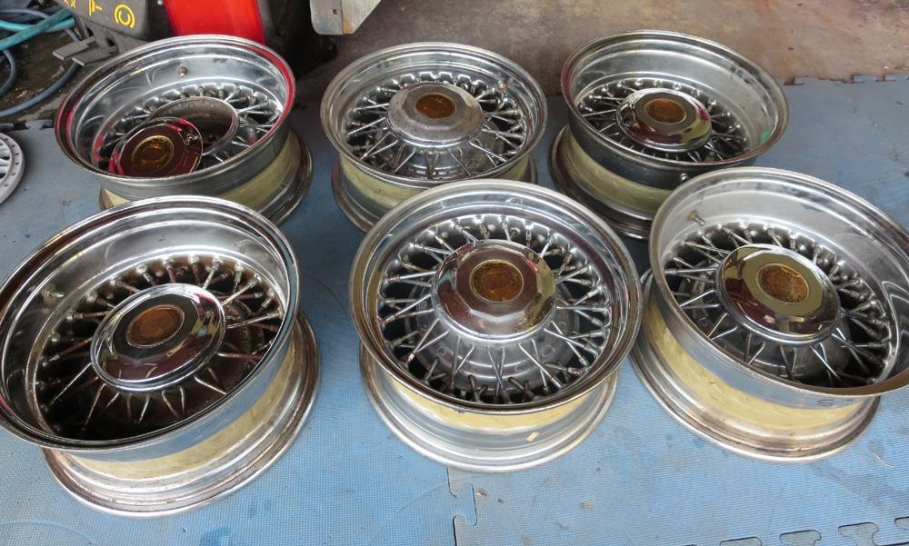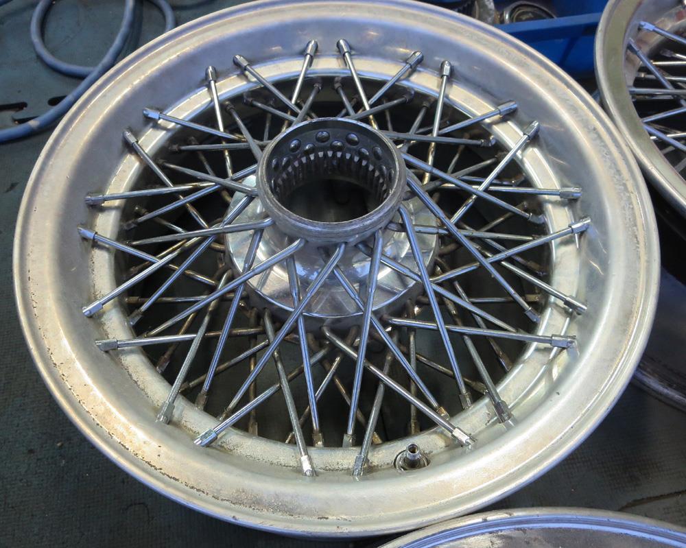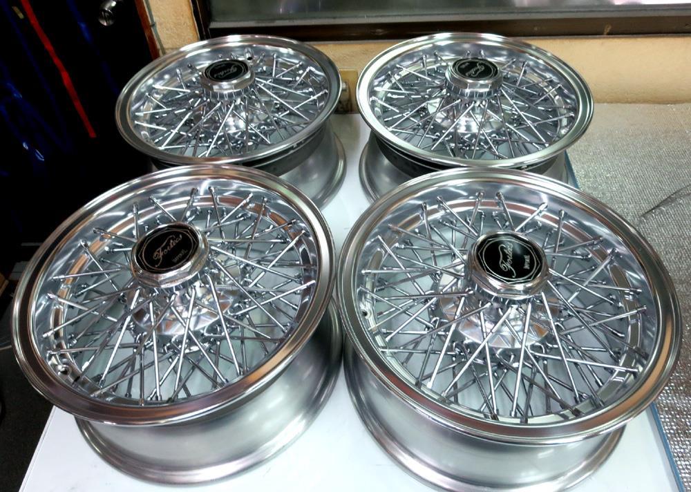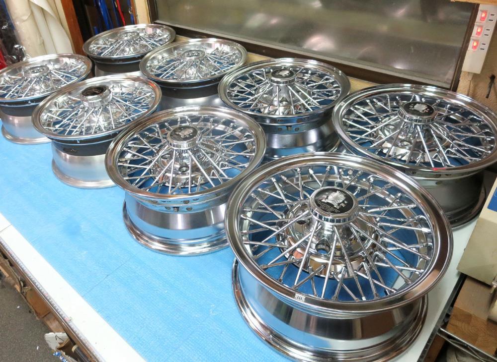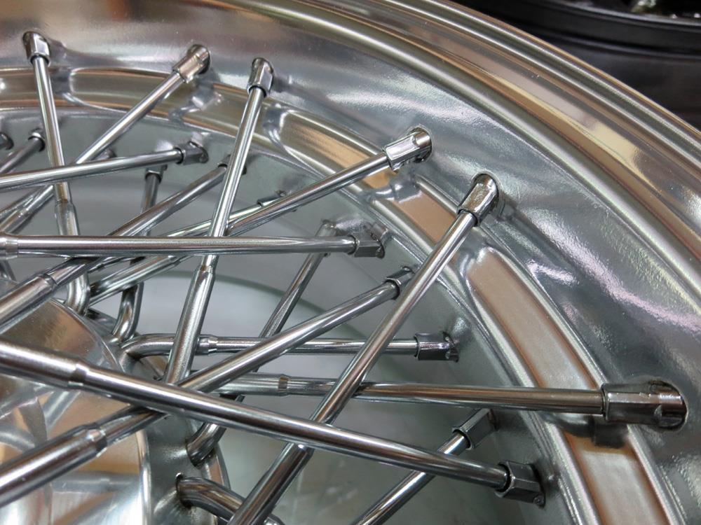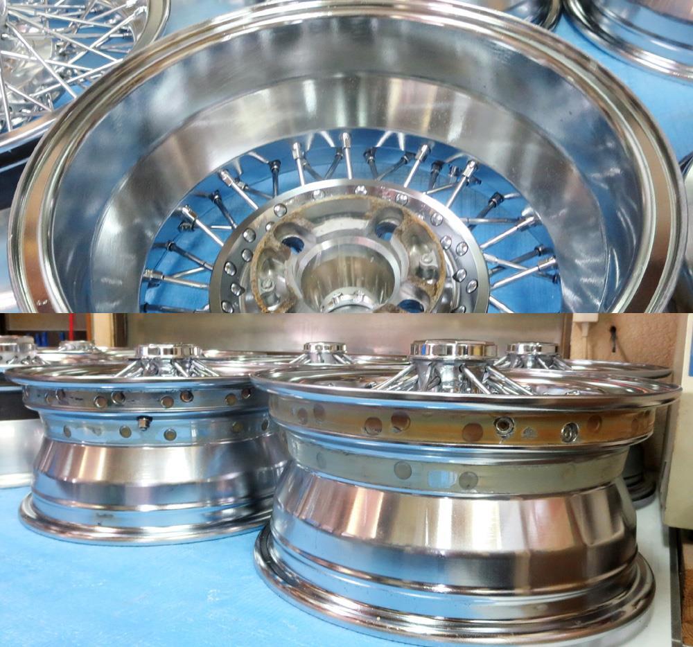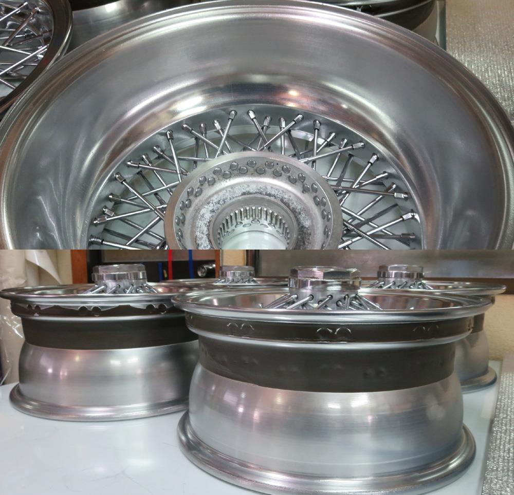 再メッキが出来ない複雑な構造のワイヤーホイールの錆び取りから研磨出来るリペアー再生としてはこれ以上の方法は無い画期的な研磨工法が当社独自のバレル研摩です。※バイクのワイヤーホイールもバレル研磨可能です。