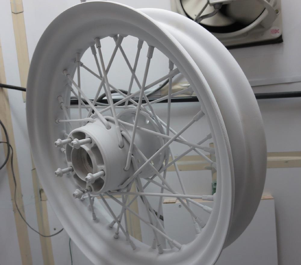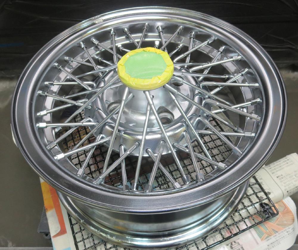2・・ワイヤーホイールはリム側面にエアー漏れ防止でシーリングが塗られているため高温焼き付けのパウダークリアーで耐えきる素材に限ります。