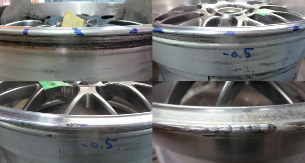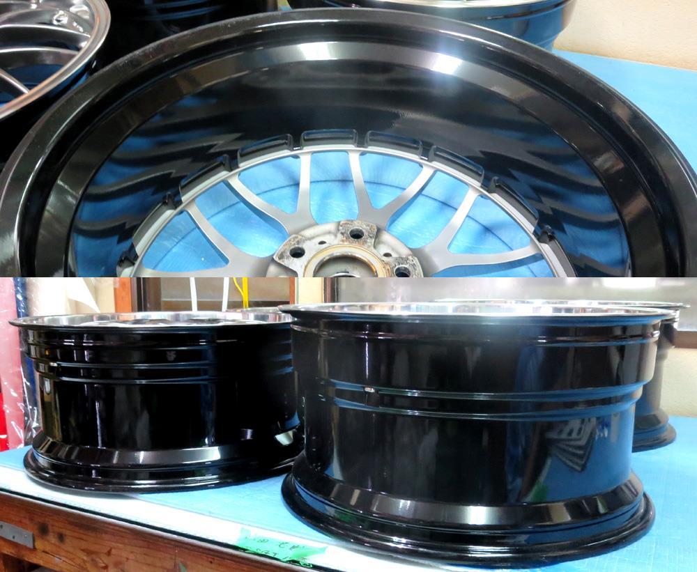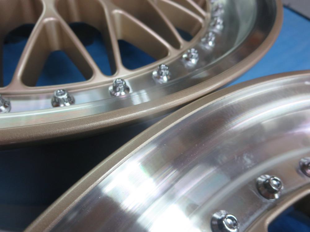 薄く仕上がった修復歴有りのリムにはのダイヤモンドカットが出来ない事とダイヤモンドカットはパウダークリアーが出来ない理由も有り耐久性重視でBBFバフポリッシュからのパウダークリアーになります。