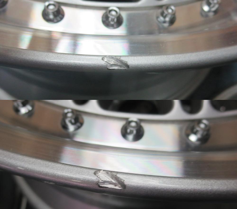 2本削り込み修理のためリムが薄く仕上げっていますが肉厚復元は出来ませんので現状のままでの磨き修理になります。