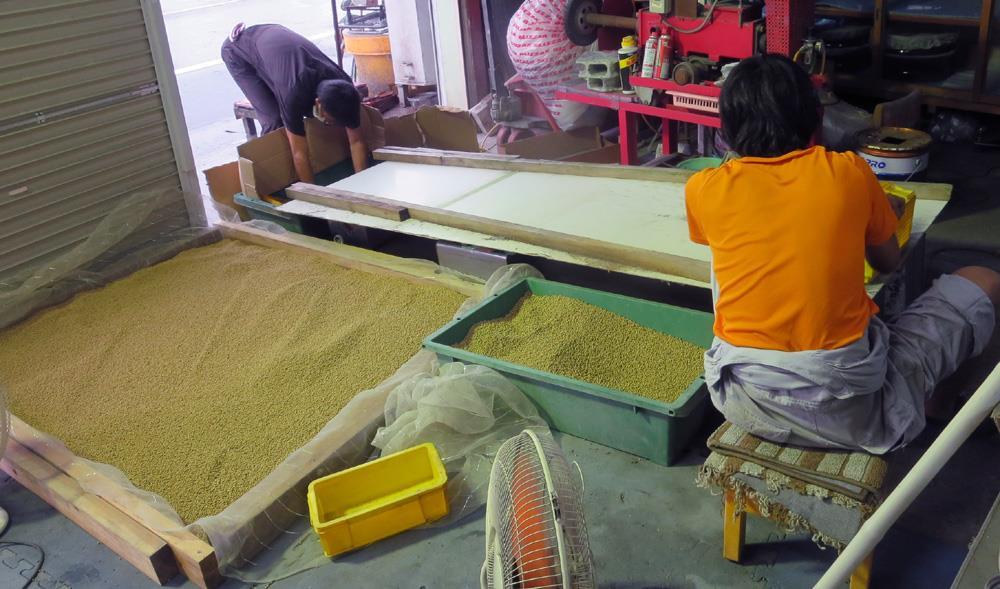 GW夏季休暇中にセラミックボールを4日間天日干しして割れたボールを転がして選別します。少しずつ転がして選別しますので丸3日かかります。