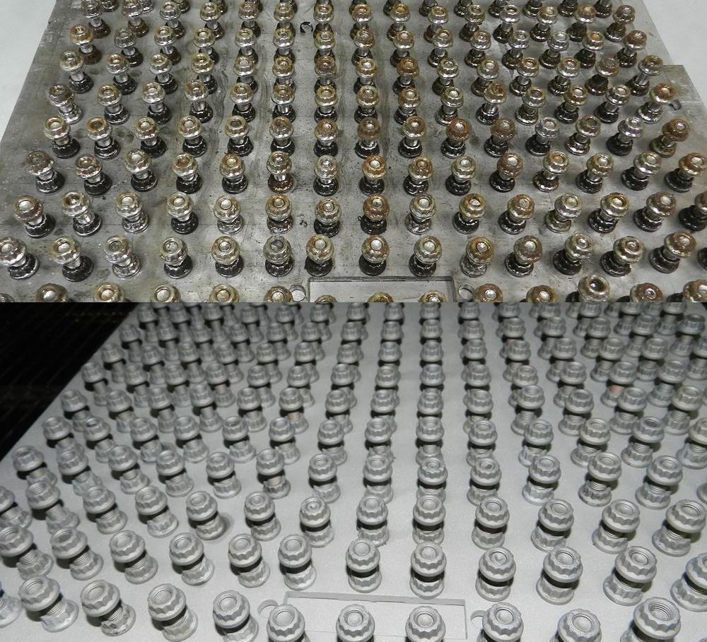 ナットは錆が酷かったためブラスト研磨して見た目と再錆防止のためにパウダーシルバー