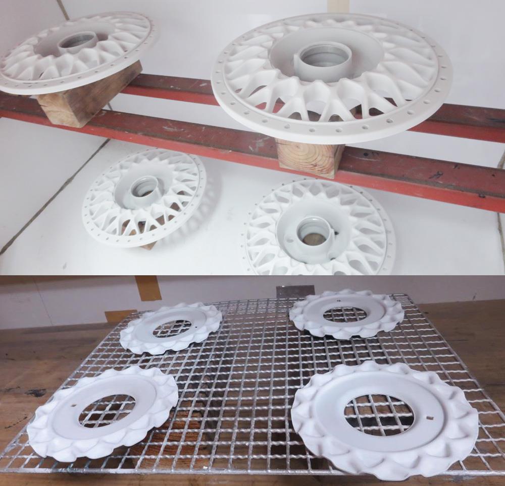※黒白赤マットブラックと言ったソリッド系などパウダーワンコートで十分ですがメタリック系は溶剤よりやや劣りますのでパウダー2コートすればビジュアルもUPします。