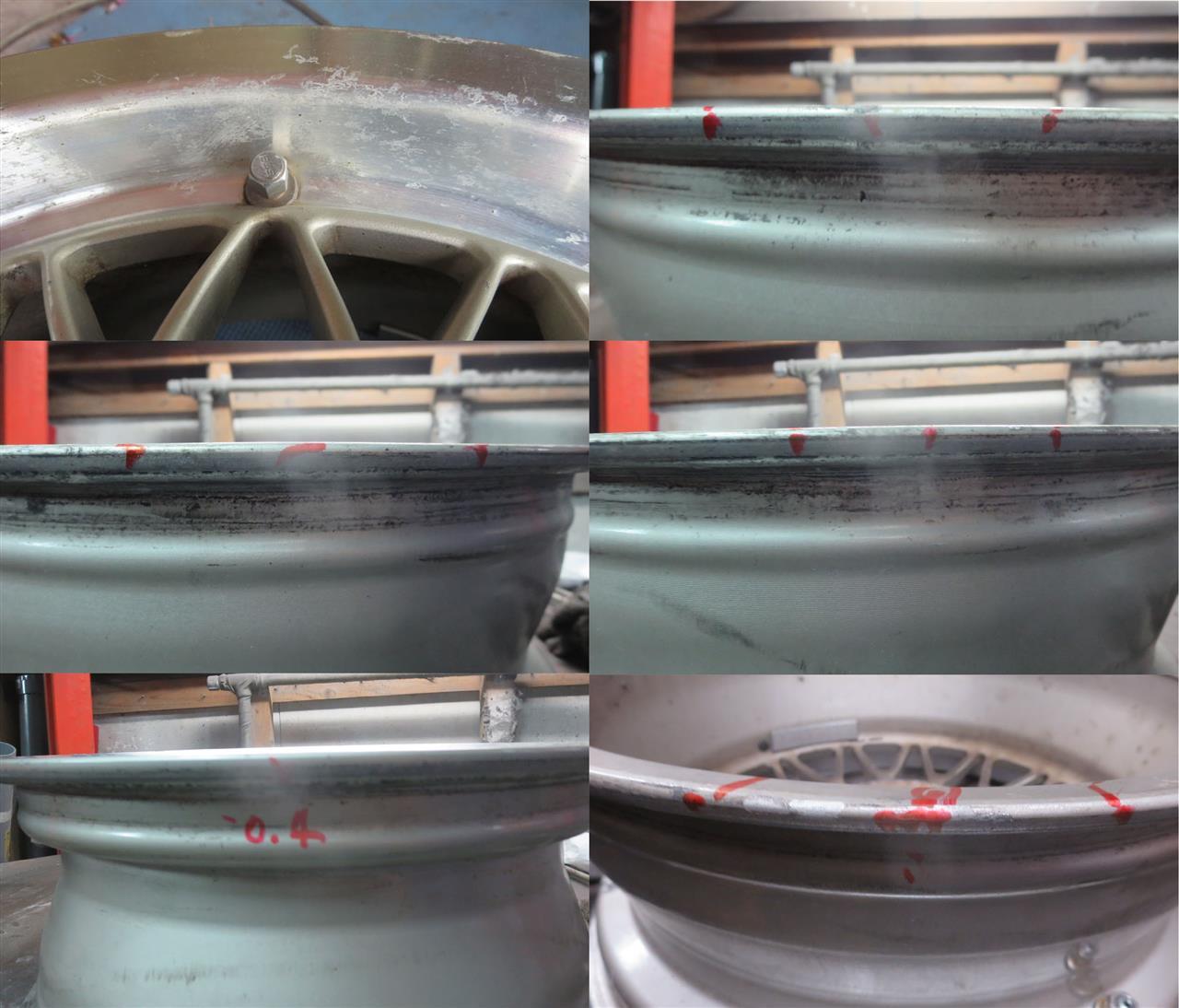 リム腐食痕によるパウダークリアーでの微小な発砲はどうしても避けられませんが、ガリ傷肉盛り修理は完璧です。