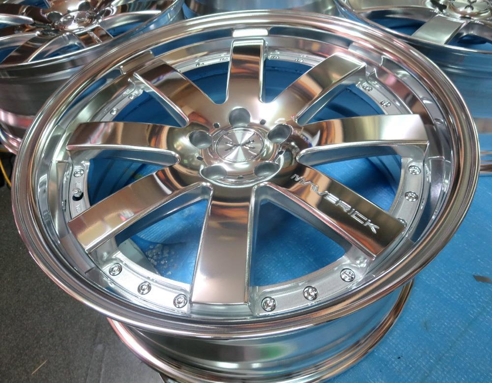 鳥取県のお客様・・・Wdesマーベリック新品18インチの「リムは合金プレスの化研光輝アルマイトでディスクは鋳造のダイヤモンドカット」素材と表面処理が違うモノを溶接して有る2Psハメ殺しです。