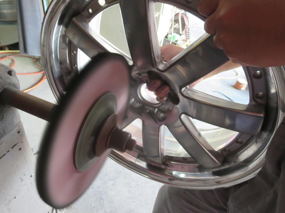 6・リム全面バフ磨き(ディスクに干渉しない箇所までの磨きなら可能ですが磨き筋境目が出ます。)