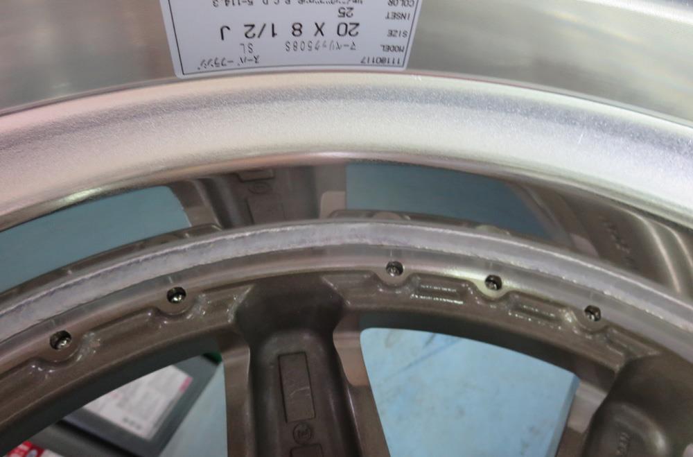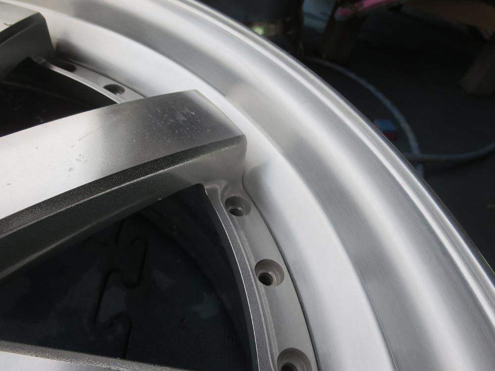 リムは光輝アルマイトのWORKグノーシス2Psハメ殺しです。当然リムの光輝アルマイトは当然不可ですがバフ全面磨きすら出来ず、ディスクのダイヤモンドカットも出来ません。