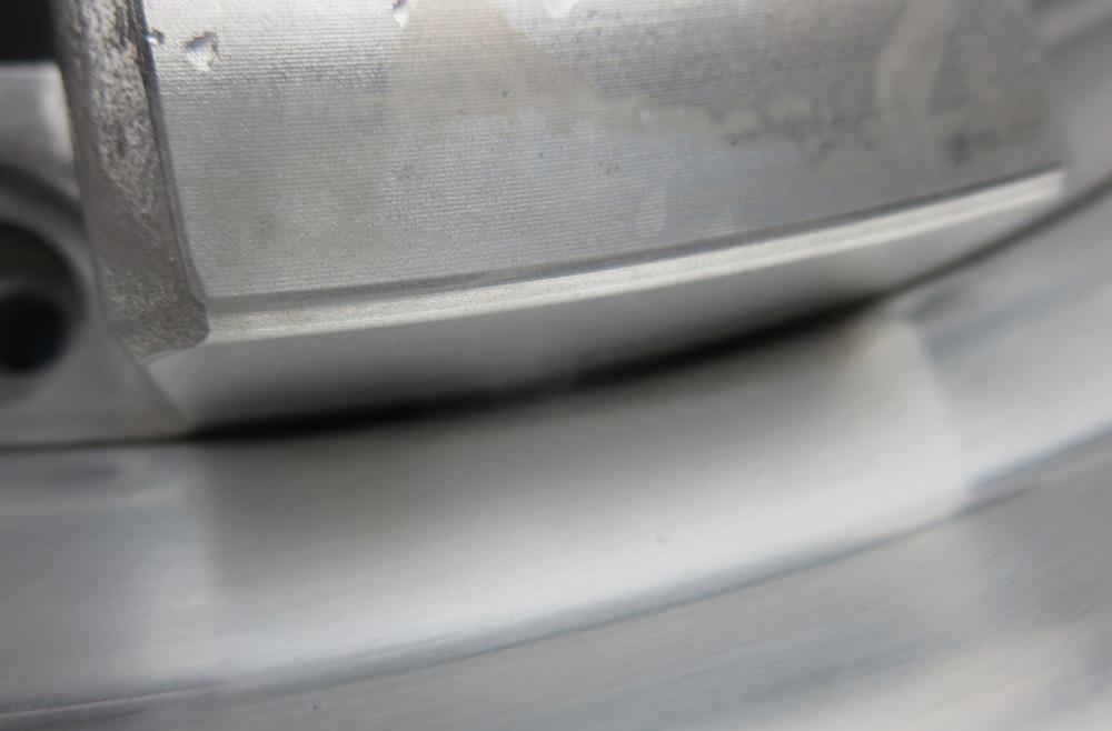こちらWORKの2Psハメ殺しはリム縦柱とディスク縦柱の隙間が2~3㎜しかないためリム奥まで研磨が届きません。