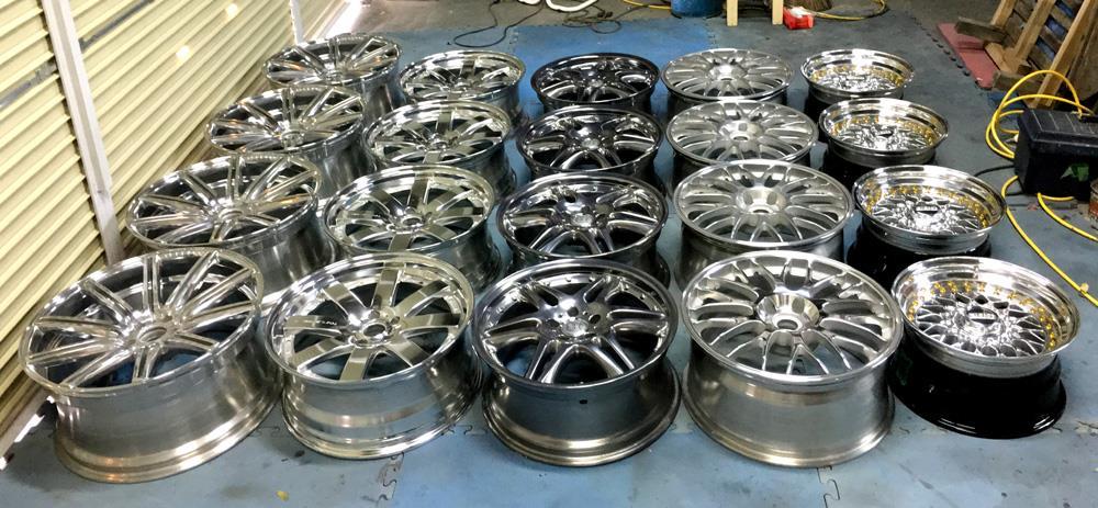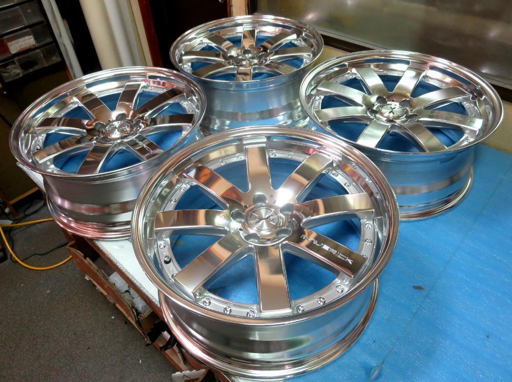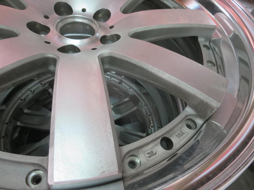 合金プレスリム(光輝アルマイト)と鋳造のディスク(溶剤ブラック&ダイヤモンドカット)それぞれ何とか個別の研磨