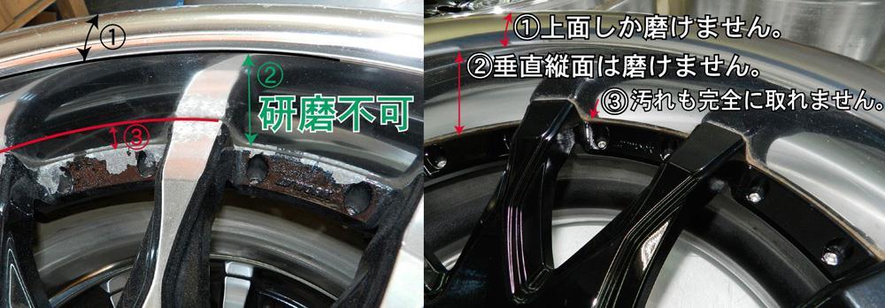 アウトリム奥は届く範囲までとなるため分解可能なリムの様に見えない奥隅までの研磨が出来ません。