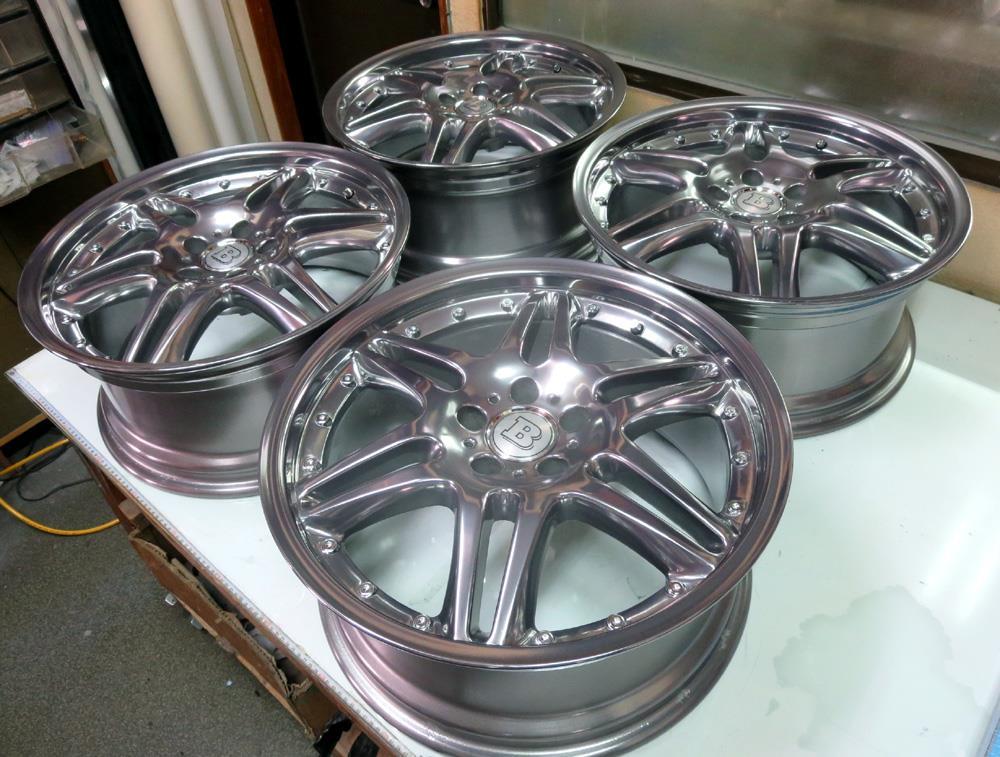 ブラバス19インチクロームメッキ剥離からのバレル3次元研磨パウダースモークブラック(薄め)です。