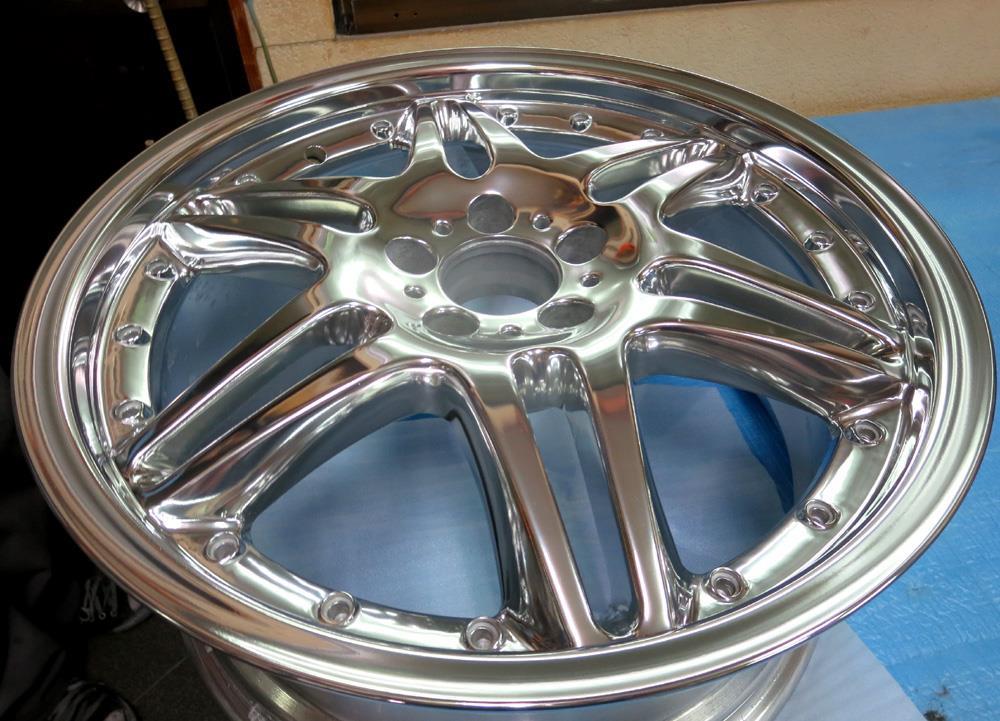 クロームメッキは耐久性が悪い上に高額な修理コストが掛かります。高額な料金で再クロームをしてもまた剥げてしまい永くは持ちませんので再クロームのオーダーはほとんど無くなりコスト面や耐久性重視で再クロームでは無くカラー塗装やバレル研磨またはブラッシュドなど別施工でのリメークが多くなっています。