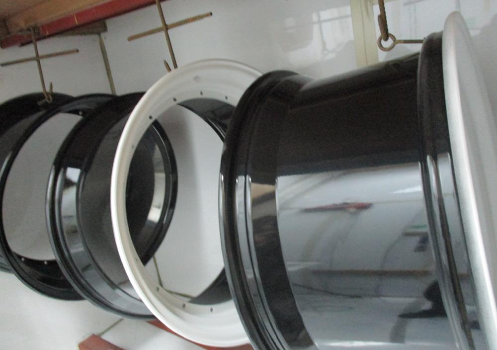 センターディスクの塗装までの下処理として1・塗装剥離~2・ブラスト研磨~3・ハンドアクション研磨~4・バレル研磨~5・化成処理~とこちらも念入りに下処理をしています。塗装は下処理が命です。
