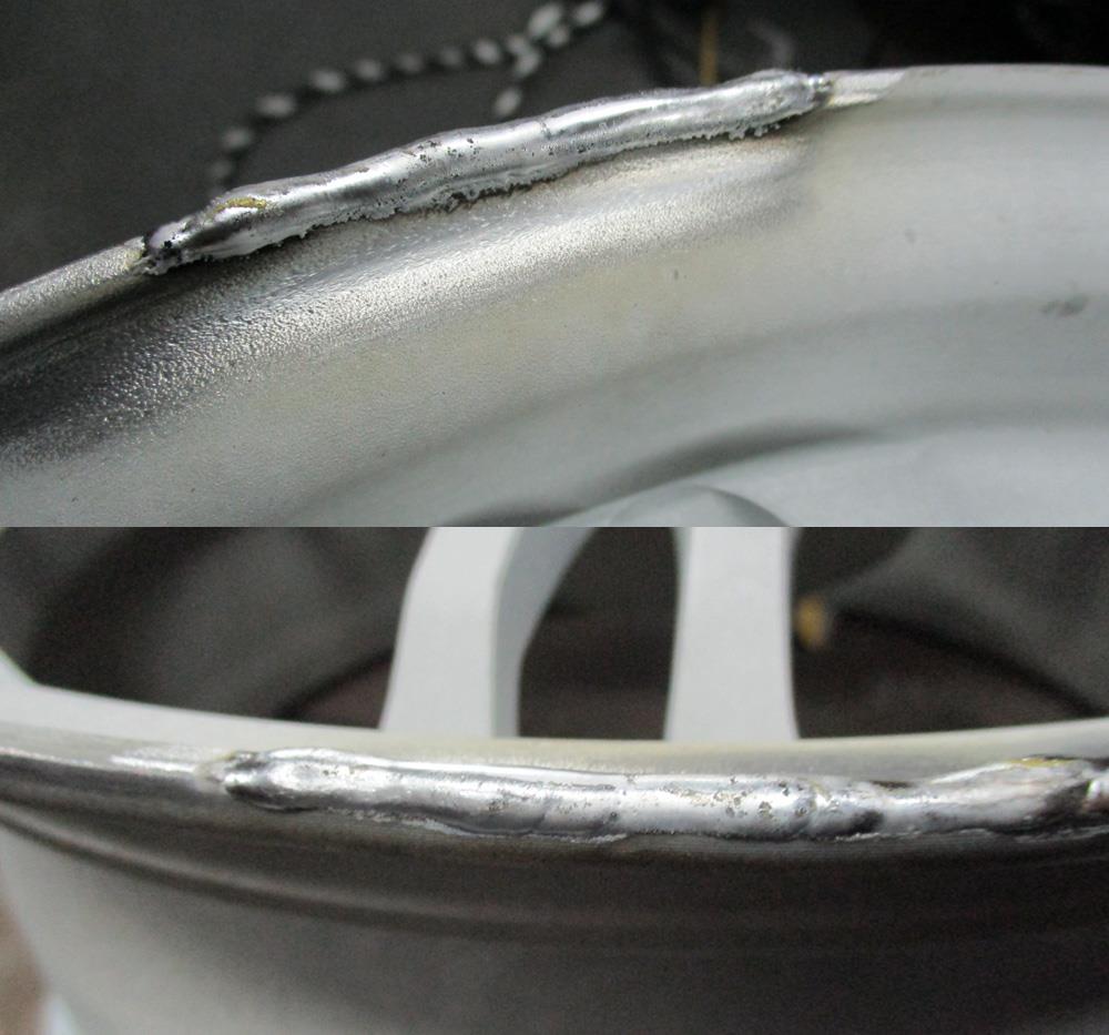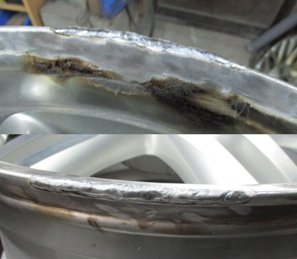 バレル研磨やリム磨き、パウダーコートなど曲りガリ傷は治せても「虫食い、陥没、腐食」など完全には治りませんので腐食損傷の有無こそが仕上がりを大きく左右する重要ポイントです。