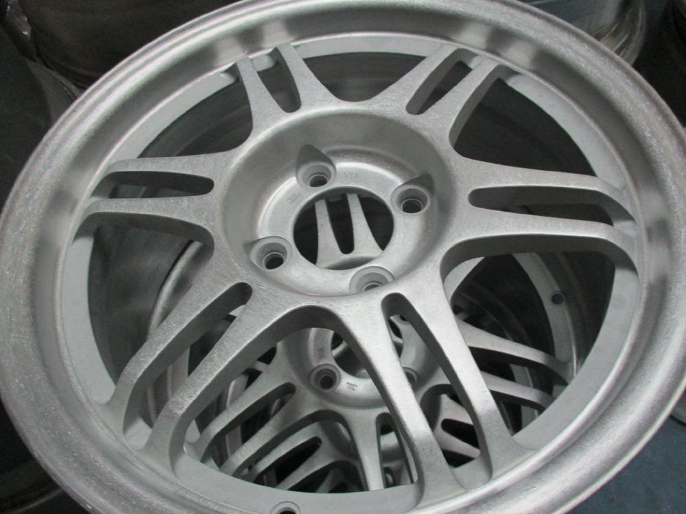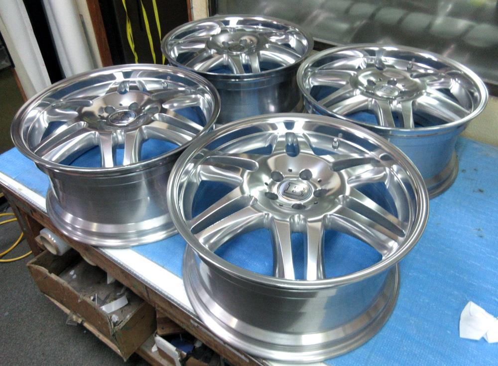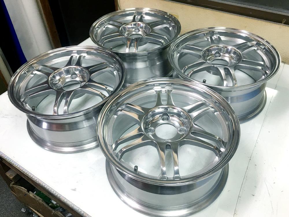 滋賀県のお客様・・・鍛栄舎15インチ国産鍛造(FORGED)です。ガリ傷修理、バレル2次元研磨からパウダークリアーにします。