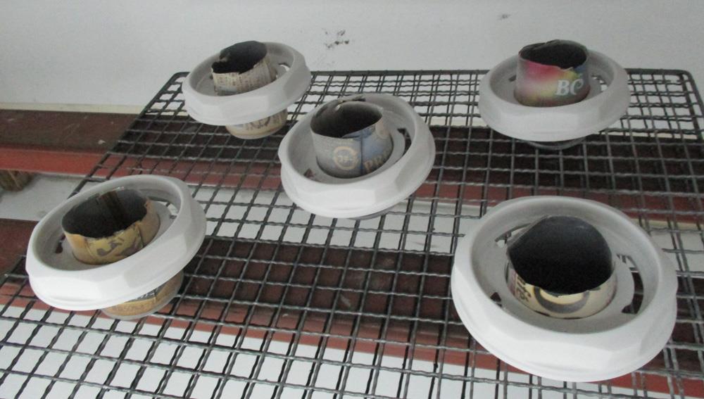 8個まとめて6角キャップのバレル研磨からパウダークリアー静電噴射!