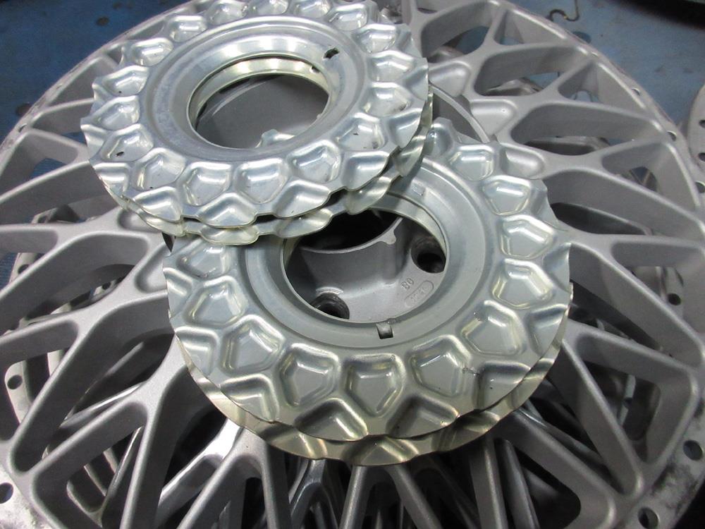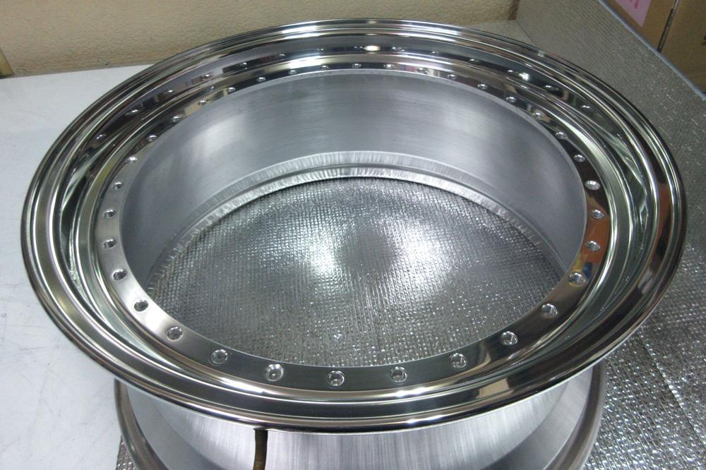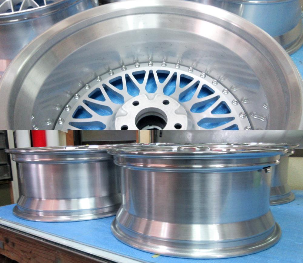 19インチはディスク/溶剤シルバーメタとリム/BBFバフポリッシュノークリアー仕上げで、18インチはディスク/パウダーシルバーからパウダークリアーでリム/バレル研磨ポリッシュからパウダークリアーの全パーツフルパウダーコートです。