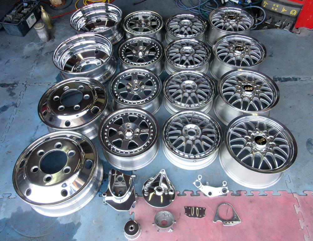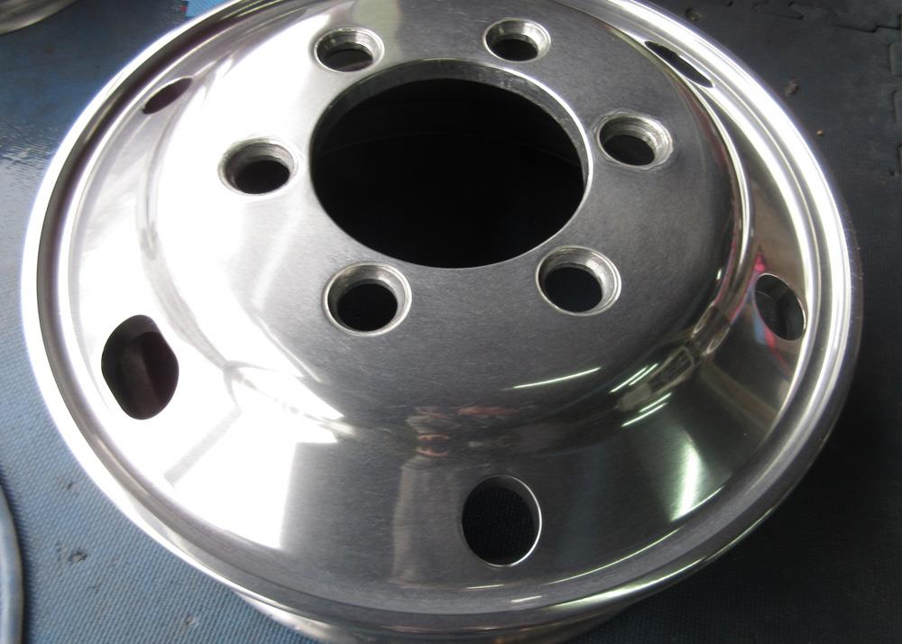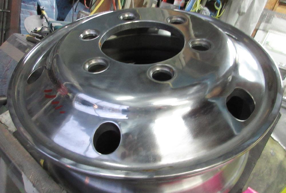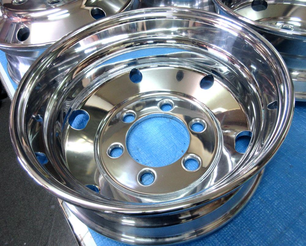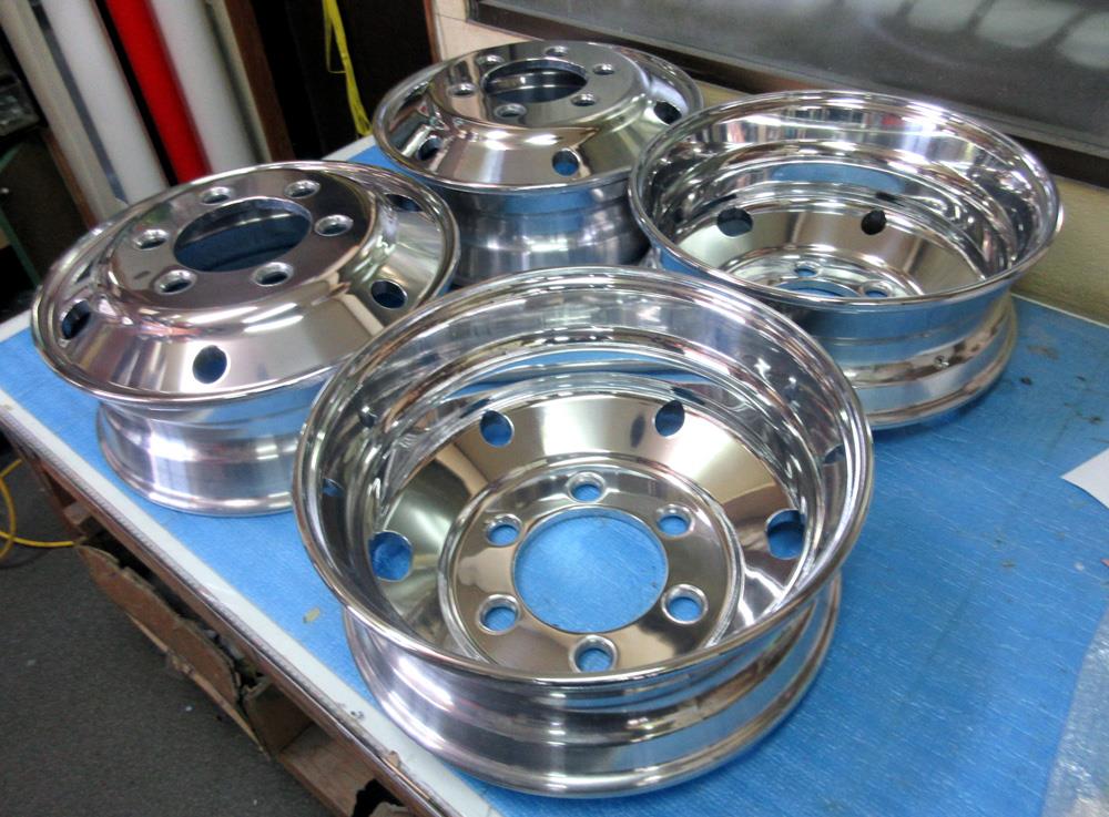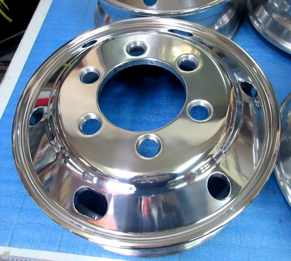 専用治具さえ制作出来ればトラック用のホイールや乗用車用22インチまでならバレル研磨によるフルポリッシュが可能です。