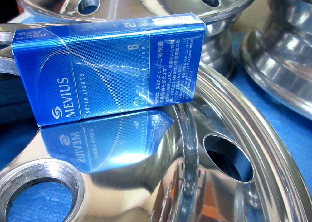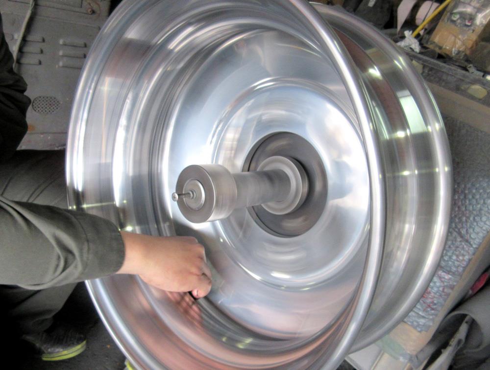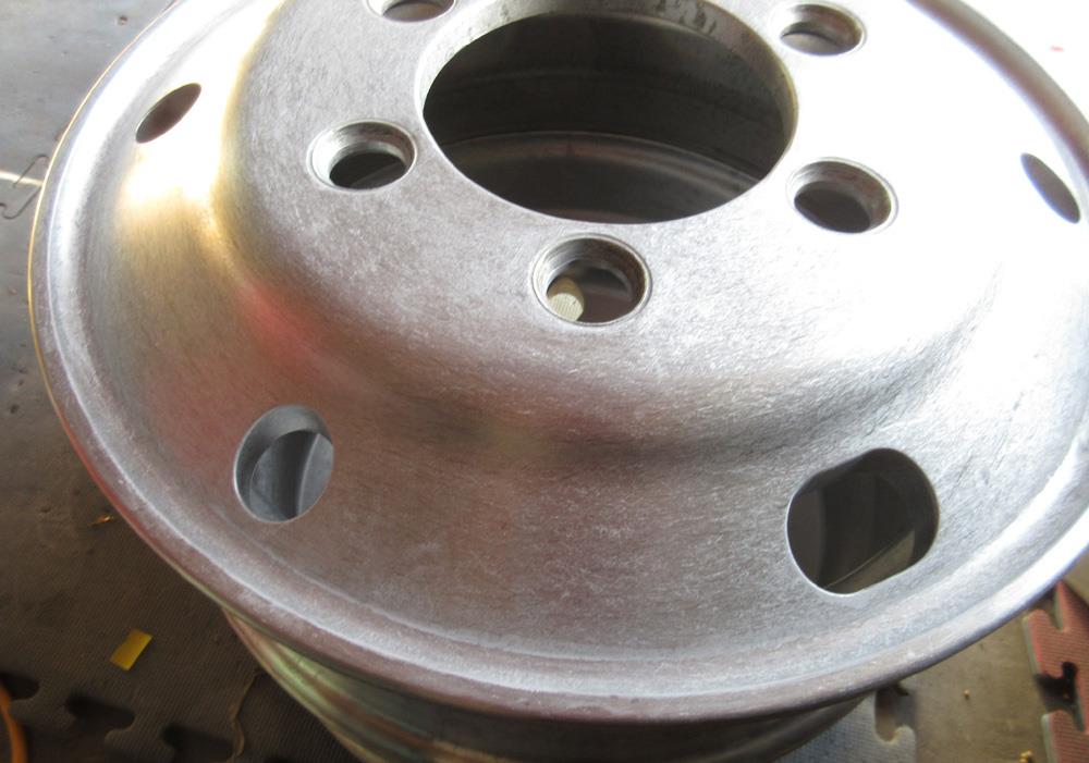 トラック用アルミホイールのポリッシュはハンド磨きによるバフ磨研磨が通常ですがバフ磨仕上げでは「バフムラ・バフ焼け・バフライン」は避けられませんのでそれらを解消するのが当社独自のトラック用フルポリッシュバレル研磨です。
