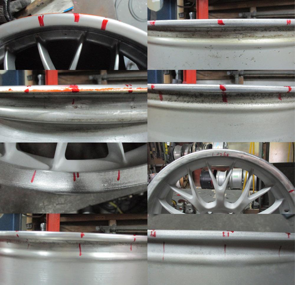 先ずは曲がり検査して曲り修理からですが1Psの鍛造(FORGED)ホイールは固いため曲り修理が結構難しです。