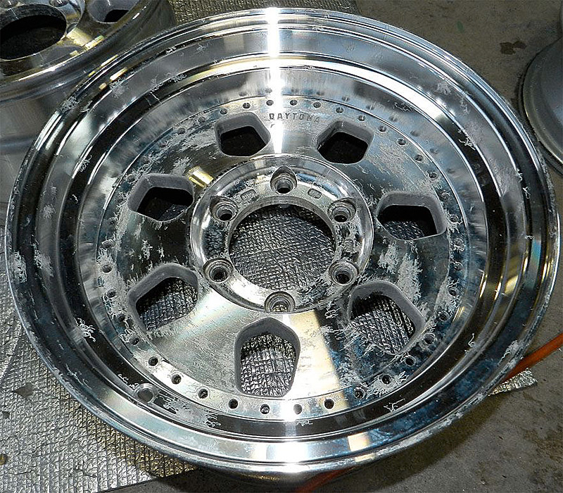 静岡県のお客様・・モデル名不明の1Ps鋳造(CAST)ホイールです。元がポリッシュのノークリアーのため酸化白ボケはしてますが常に乾燥した状態のため白ミミズ腐食は起きません。