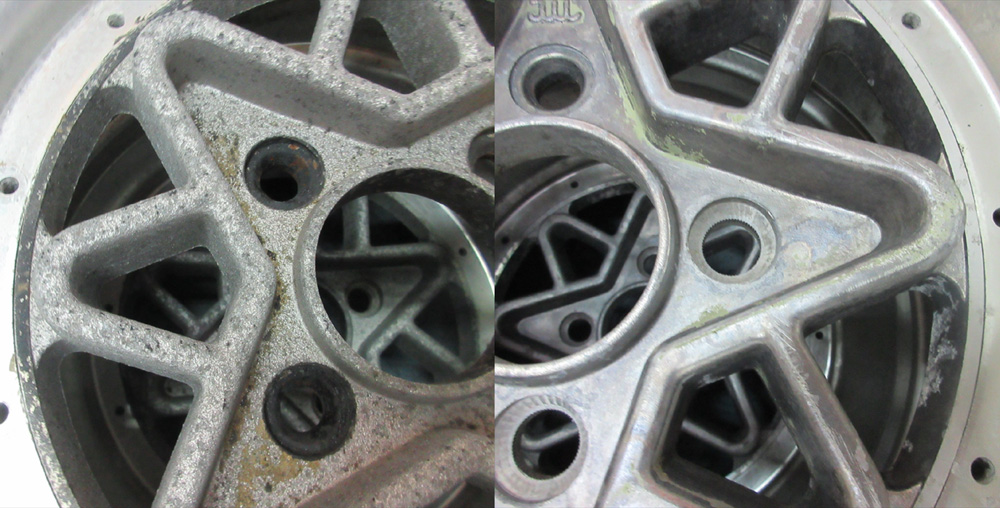 リムの虫くい、腐食が無い事がポリッシュ磨きの仕上がりを大きく左右します。