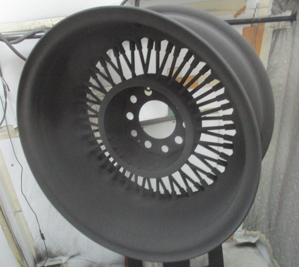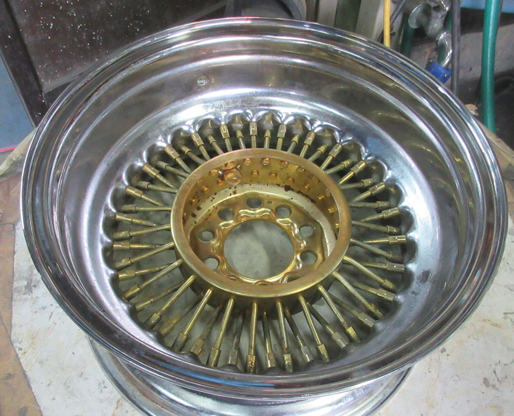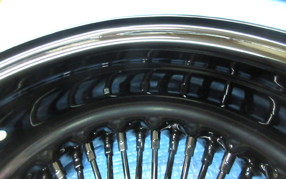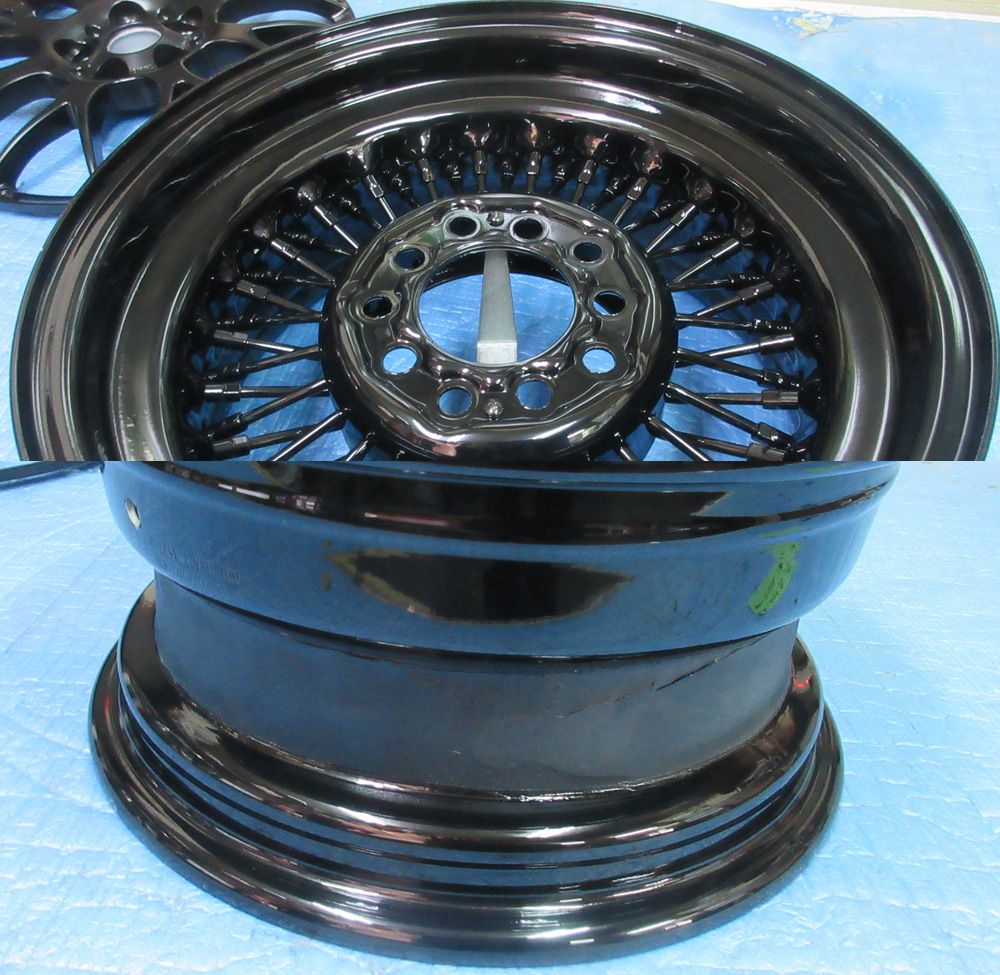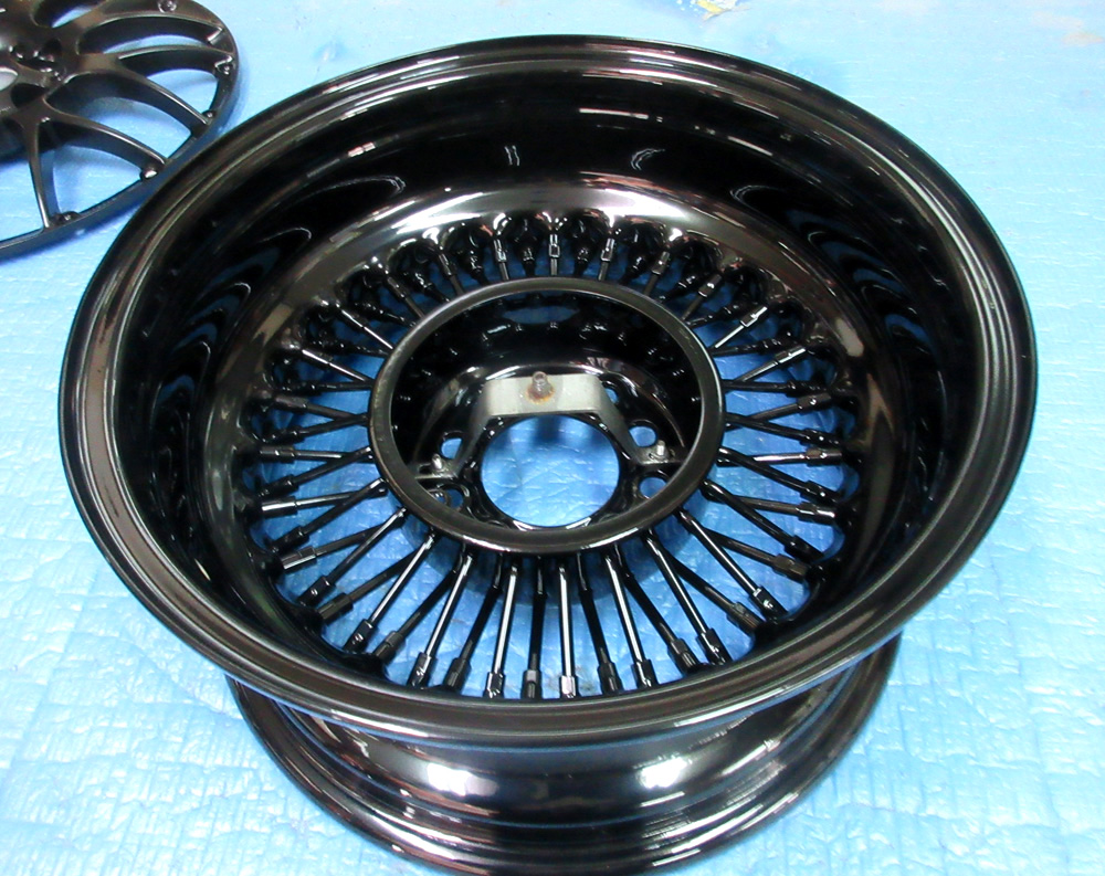 その1・・・四輪ワイヤーホイール鉄クロームメッキの曲り修理からパウダーグロスブラック