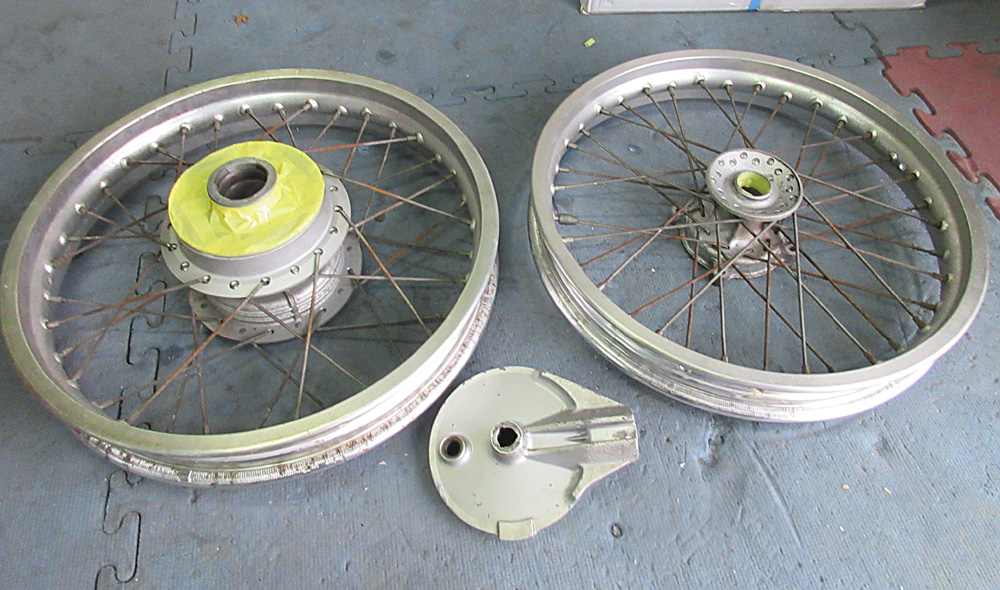 愛媛県のお客様・・・曲り、割れ、錆び有りの二輪ワイヤーホイールと付属パーツです。
