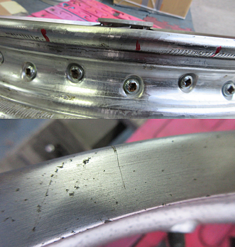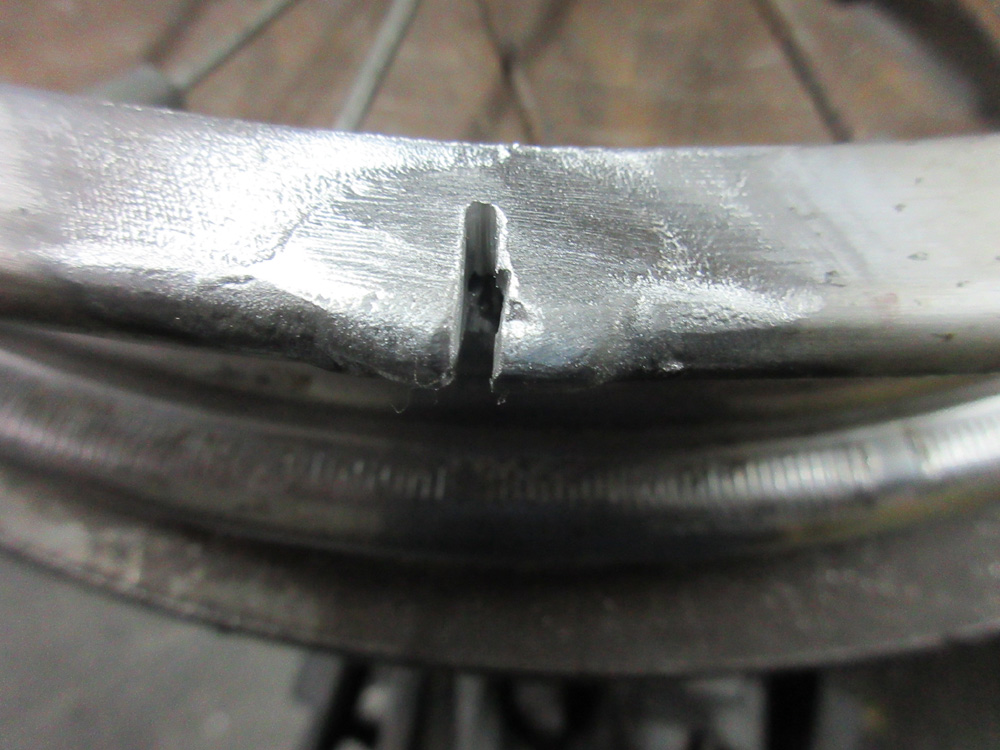 リムの曲りによる割れ有りです。