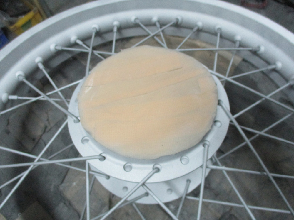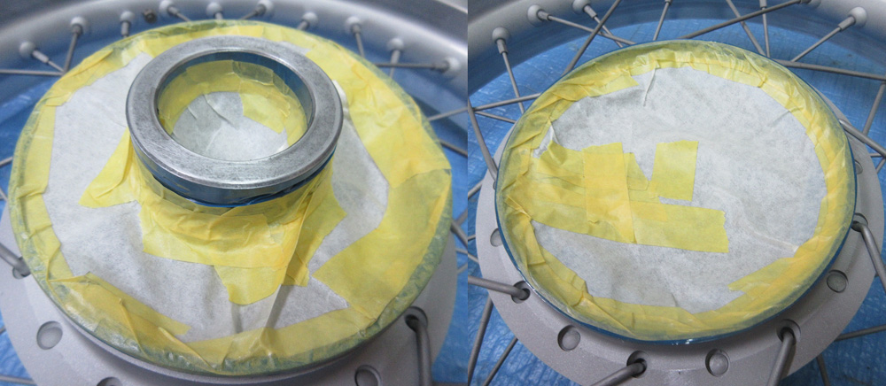 二輪ホイールは塗装が被ってまずい箇所が有るため四輪ホイールには無いマスキング作業が伴いますので手間と時間が掛かり面倒です。