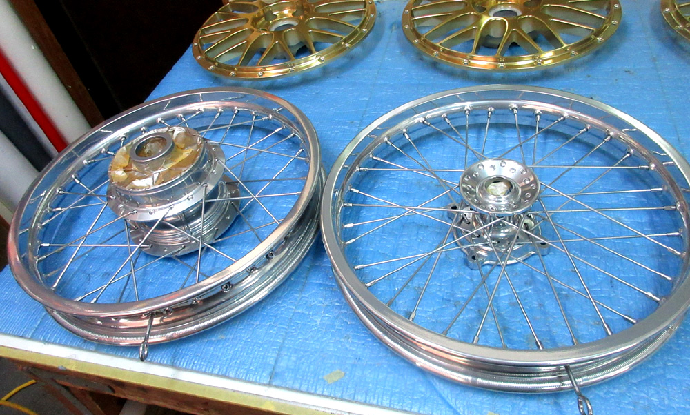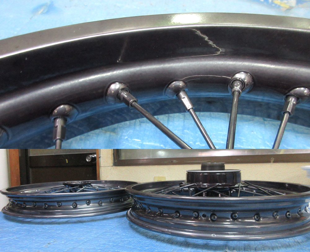 二輪&四輪ワイヤーホイールの曲り割れ修理からフルパウダーコートです。