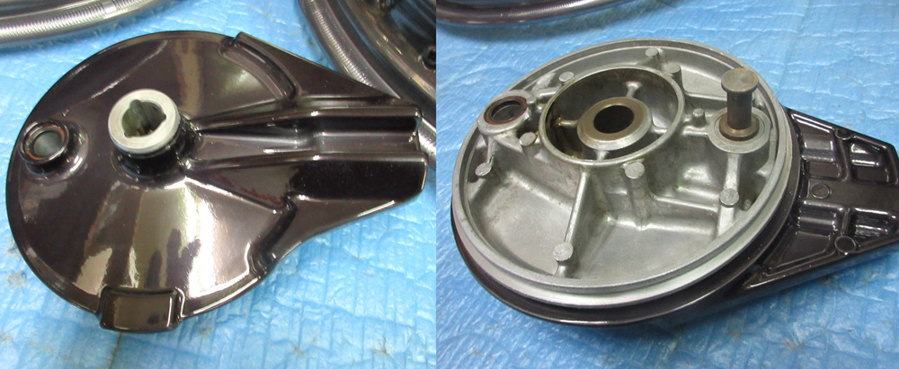 溶剤のハイパーブラック(DBK)に比べて色合いはやや異なりますが、ワイヤーホイールでしかも鉄メッキですので溶剤のDBKは不向きです。