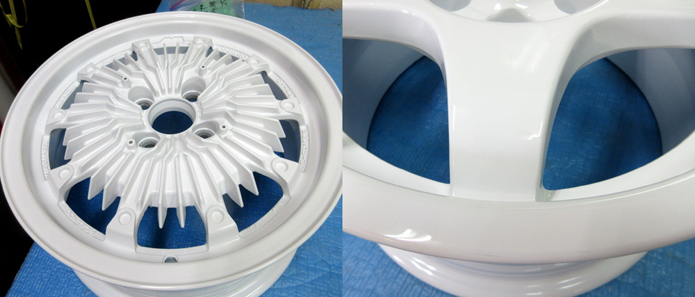 裏リムは普段汚れっぱなしでメンテ掃除が出来ませんので「頑丈肌で密着性が良く塗装が剥げにくい・熱に強いためパットカスが付きにくい・汚れ付着がしにくいため汚れ落ちが良い・白光りして見栄えが良い」などインリム塗装はパウダーコートが絶対お勧めです。さらにパウダーコートはガラスコーティングなど不要です。