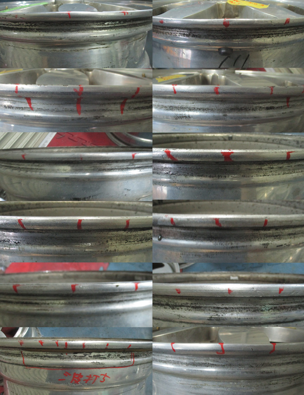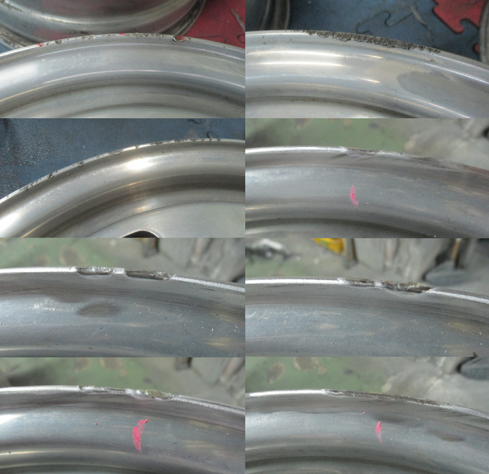 写真は極一部抜粋ですが4本リム表裏ボコボコ曲がっています。
