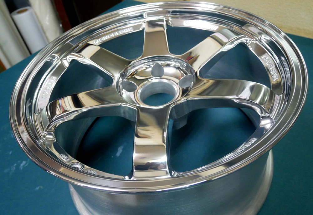 RAYSTE37は国産鍛造(FORGED)ホイールであり素材が良いため素地表現のバレル研磨には相性抜群のホイールですので、クロームメッキの様な派手な光沢では無くプレミアム感有るアルミ鍛造独特の鏡面フルポリッシュになります。